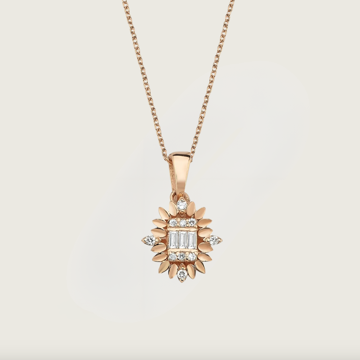Çiçek Baget Pırlanta Rose Altın Kolye