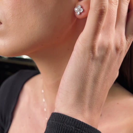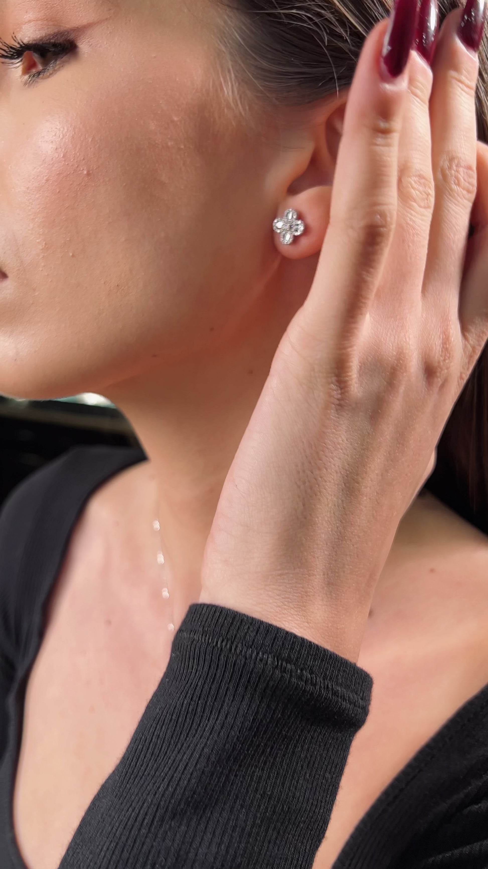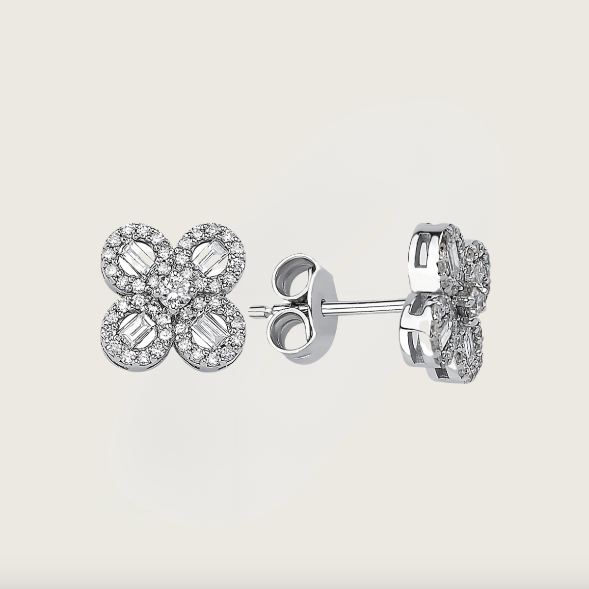Çiçek Işıltısı Beyaz Altın Pırlanta Küpe