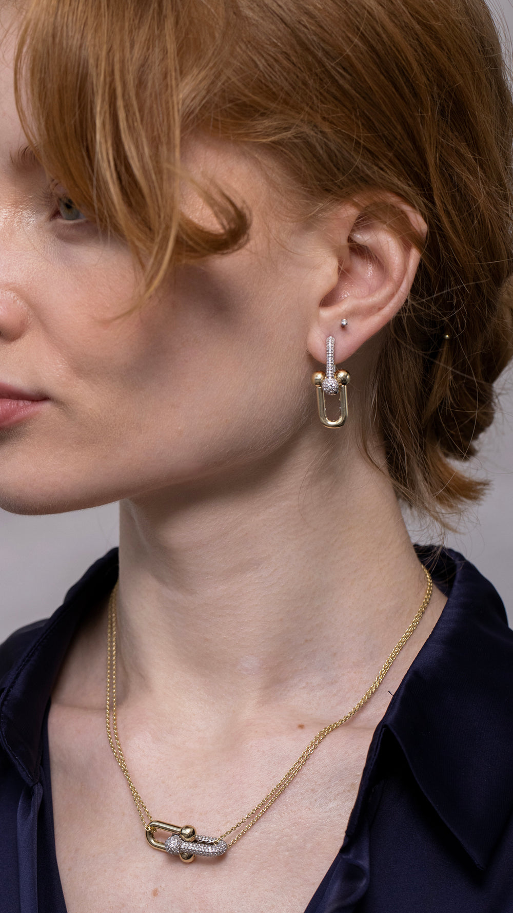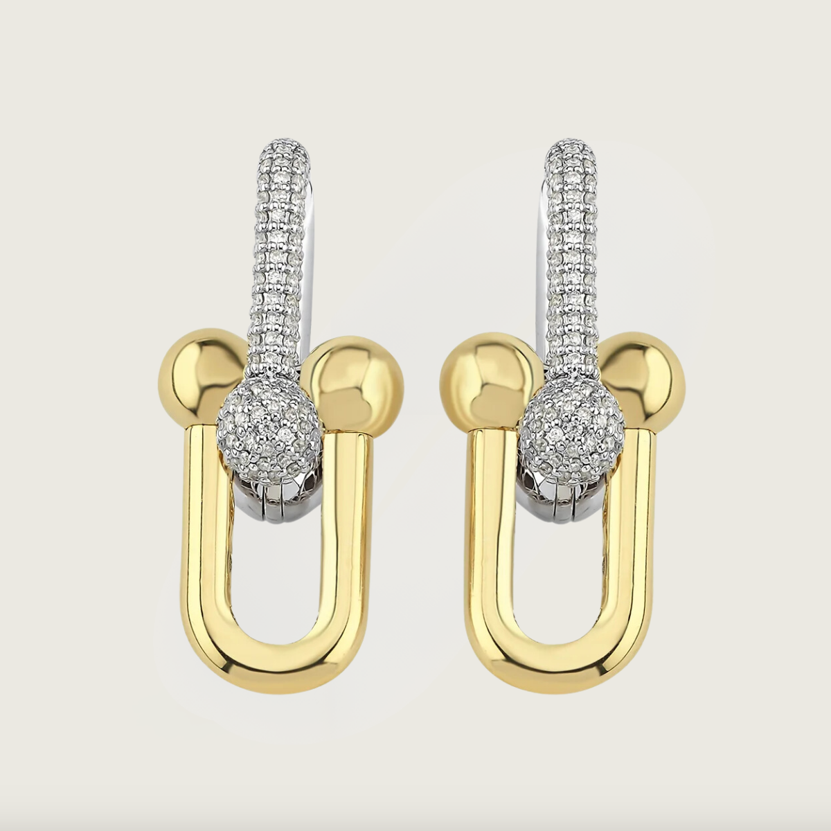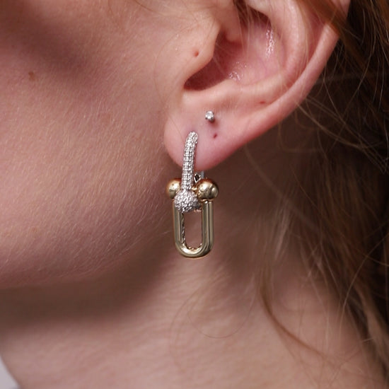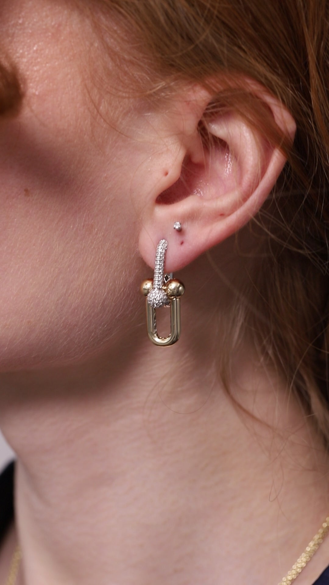 Çift Renk Bağlantılı Altın Pırlanta Küpe