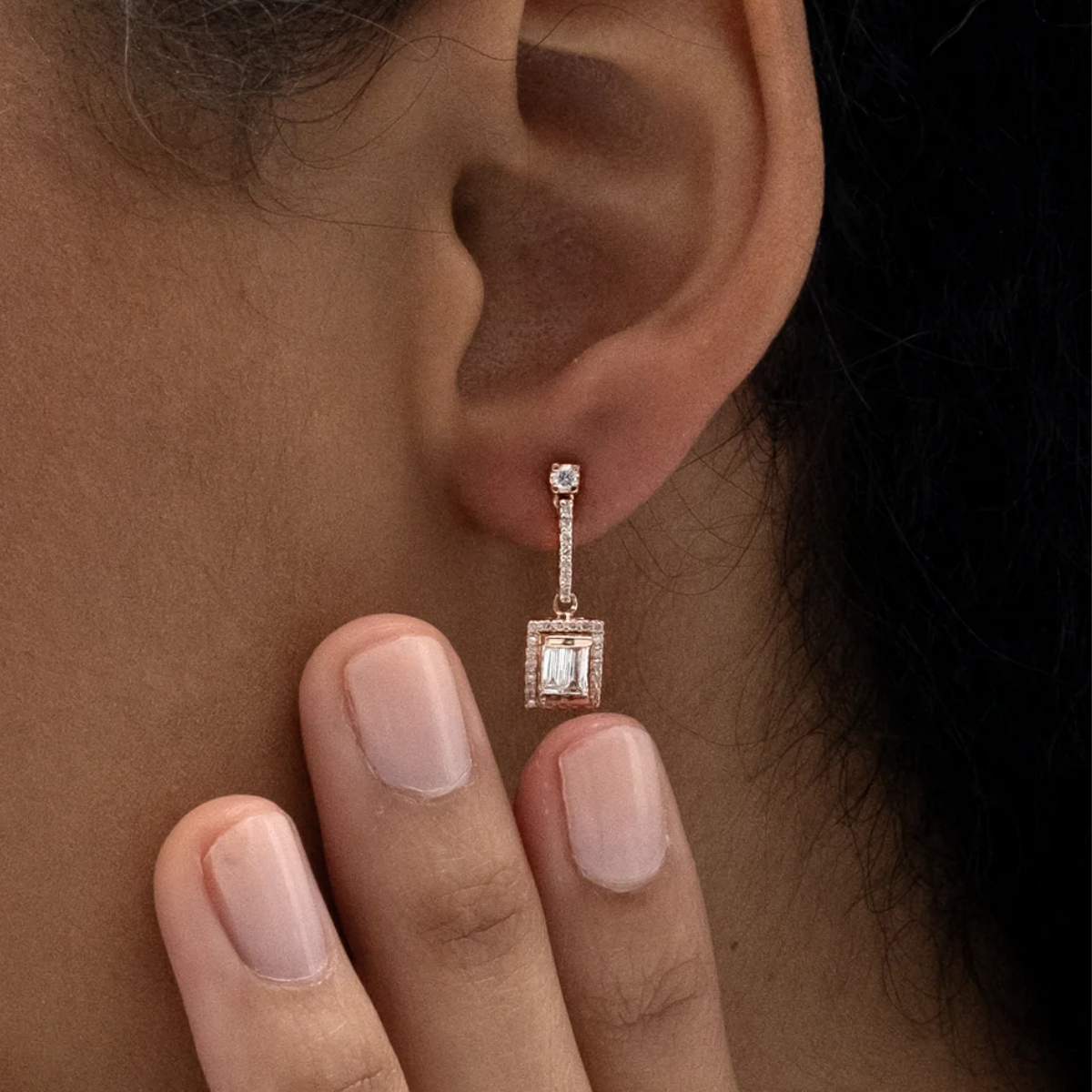 Cleopatra'nın Mirası Rose Altın Baget Pırlanta Küpe