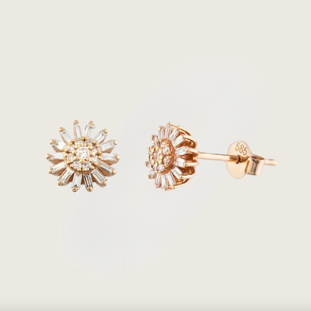 Daisy Glow Rose Altın Baget Pırlanta Küpe