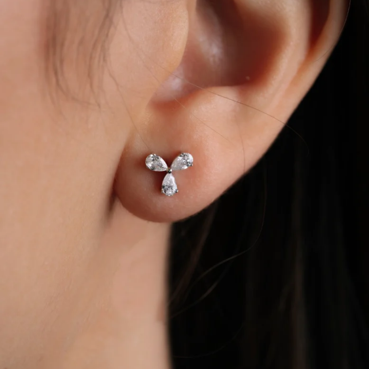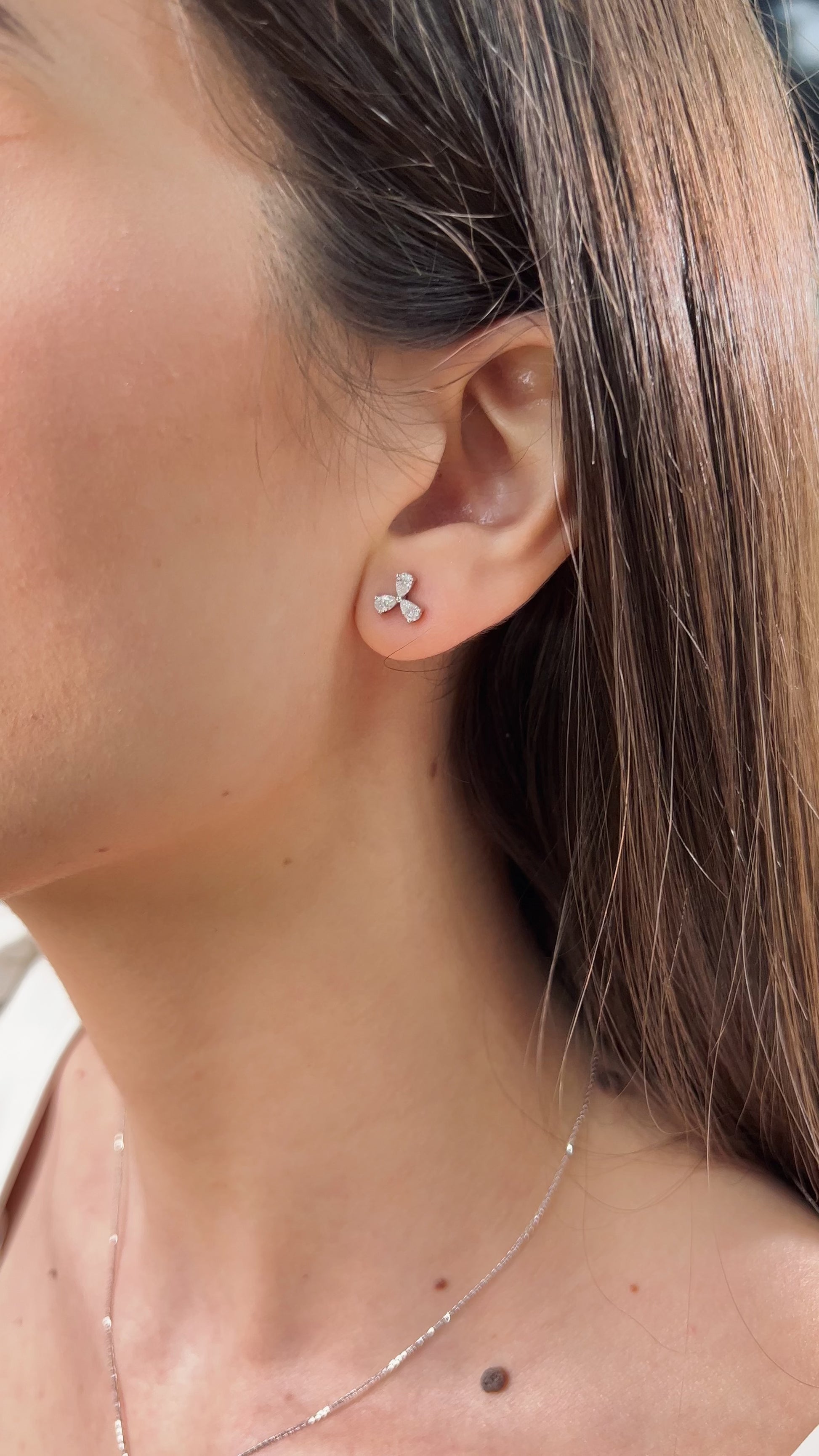 Trifoi formundaki bu zarif küpeler, 14 ayar beyaz altın ile birleşen göz alıcı pırlantalarla tasarlandı. Her biri özenle işlenen bu pırlantalar, minimalist ve şık bir tarzı yansıtıyor. Günlük kullanımda veya özel davetlerde stilinizi zarifçe tamamlayacak bu tasarım, sofistike bir görünüm isteyenler için ideal.