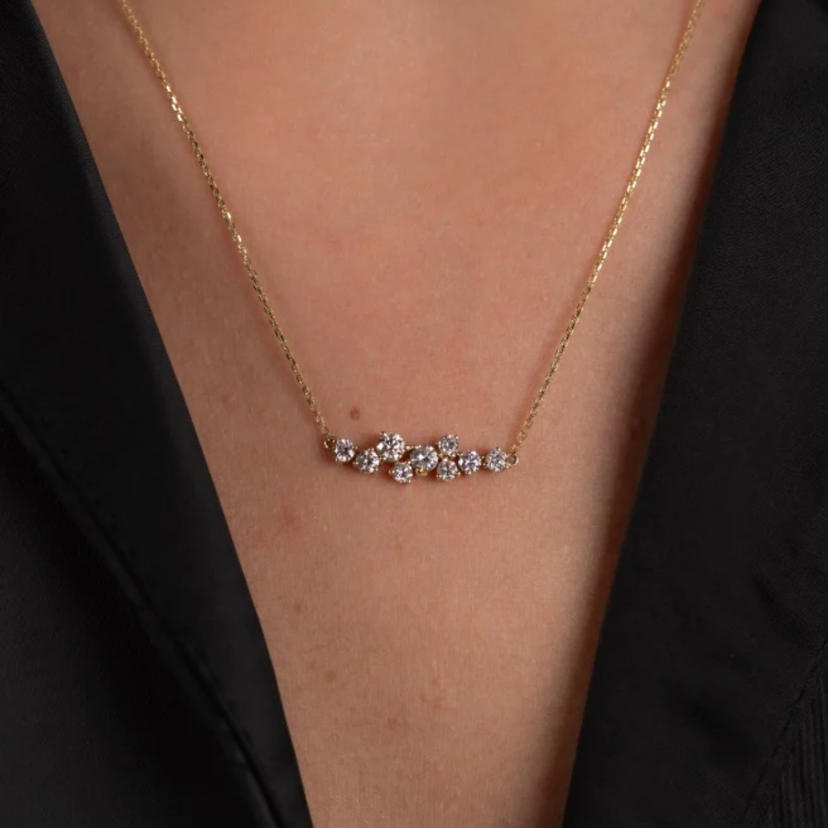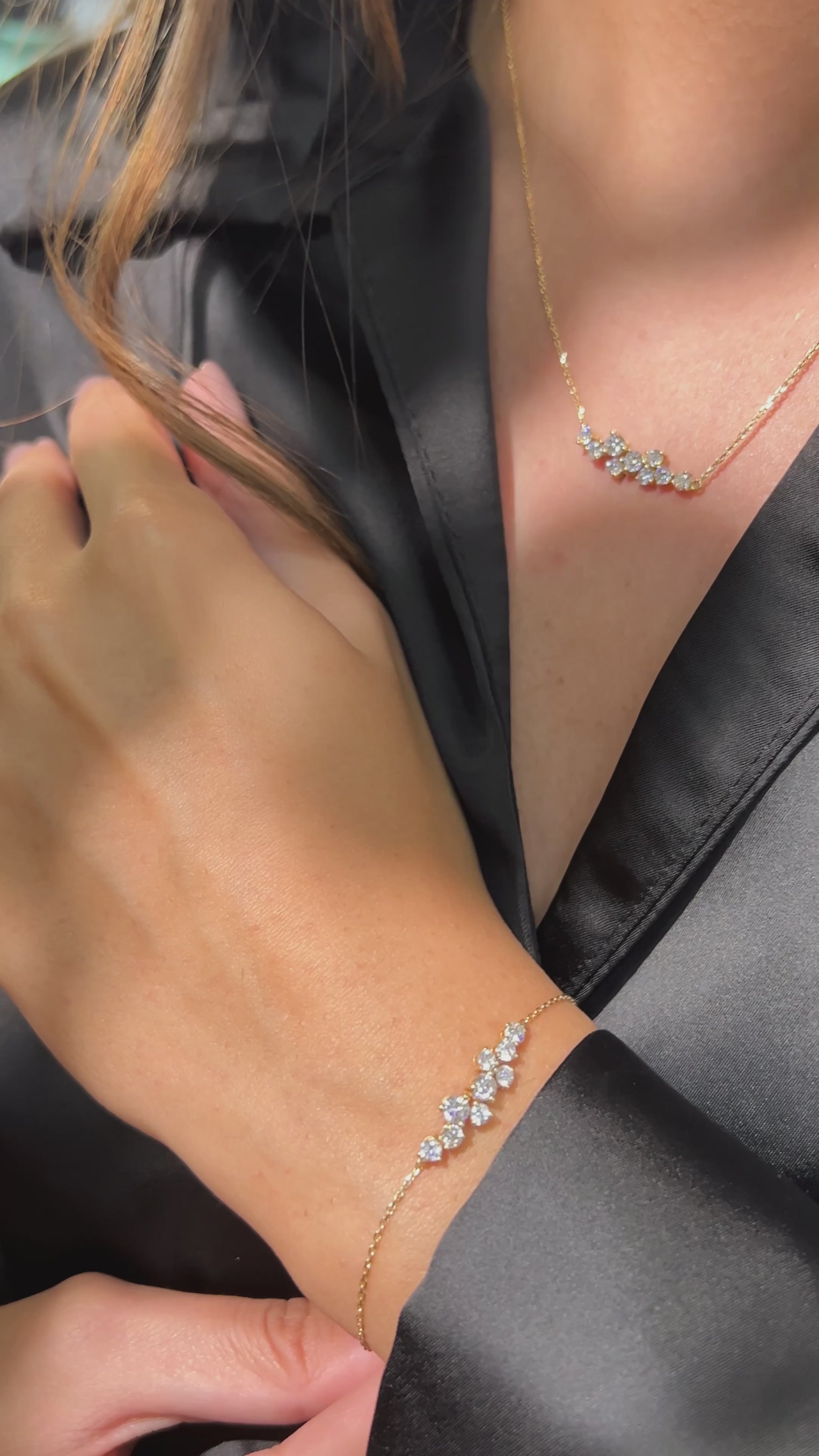 Altın zincir üzerinde doğal bir akışla yerleştirilmiş pırlantalarıyla göz kamaştırıyor. Bu zarif ve özgün tasarım, çiçeklerin zarafetini ve pırlantaların ışıltısını bir araya getiriyor. Günlük stilinizi yükseltmek ya da özel anlarınıza doğadan ilham alan bir dokunuş katmak için mükemmel bir seçim. Zamansız ve şık bu parça, sadelikle gelen ihtişamı yansıtırken her kombine kolayca uyum sağlar.