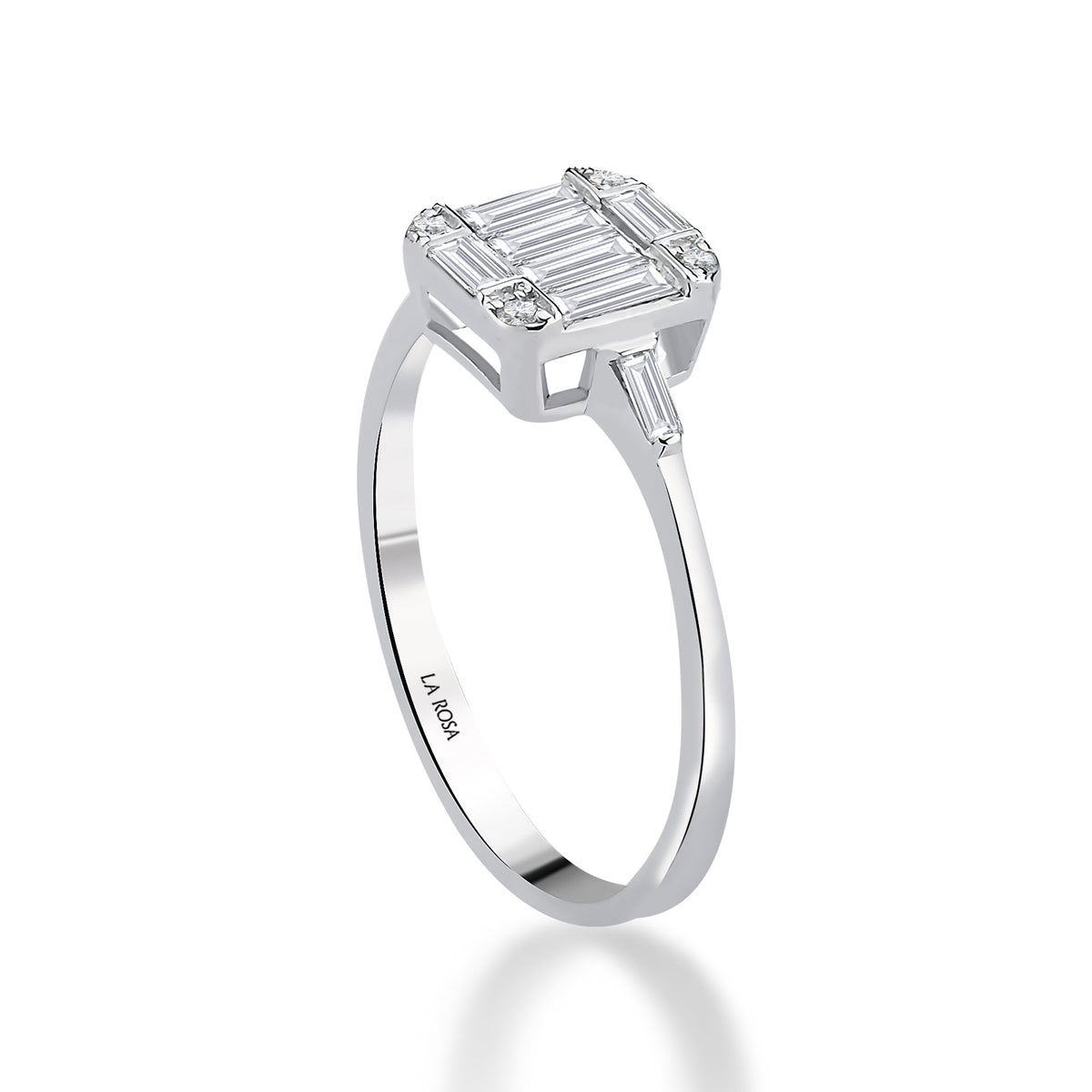 Beyaz altının saf ve asil görünümüyle harmanlanmış bu yüzük, klasik ve modern dokunuşları bir araya getirerek stil sahibi kadınların vazgeçilmezi olacak. İnce işçilikle yerleştirilmiş pırlantalar, ışığı en iyi şekilde yansıtarak her açıdan parıldar. Özellikle baget kesim pırlanta detayları, zarafetin simgesi olarak öne çıkıyor.