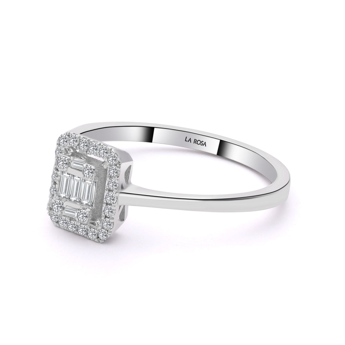 Göz kamaştıran bir şıklığa sahip Aurora Baget Pırlanta Yüzük, modern ve zarif bir tasarım sunar. Merkezdeki baget kesim pırlantalar, etrafındaki yuvarlak pırlantalarla birlikte ışığı yansıtarak dikkat çekici bir ışıltı yaratır. Kare formdaki detaylar, bu yüzüğün benzersiz ve özel duruşunu tamamlar.
