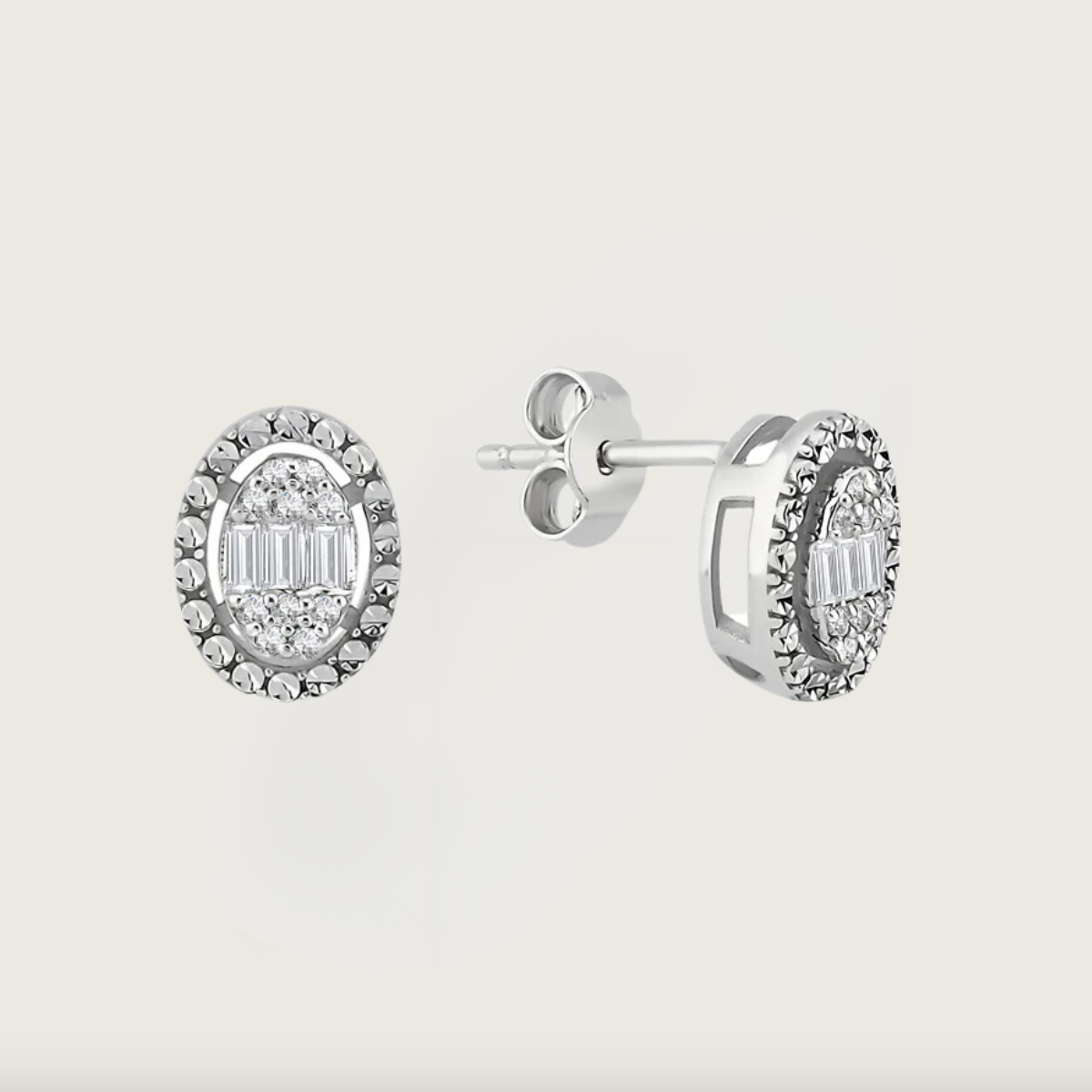 Elegant Oval Kesim Beyaz Altın Pırlanta Küpe
