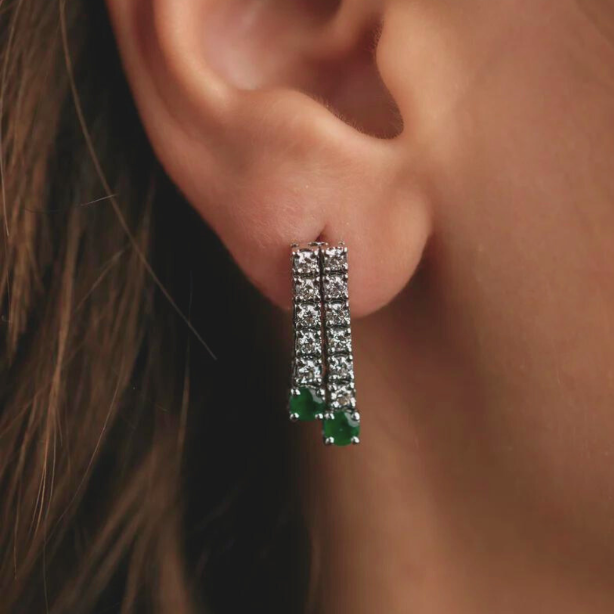 Emerald Rain Beyaz Altın Pırlanta ve Zümrüt Küpe