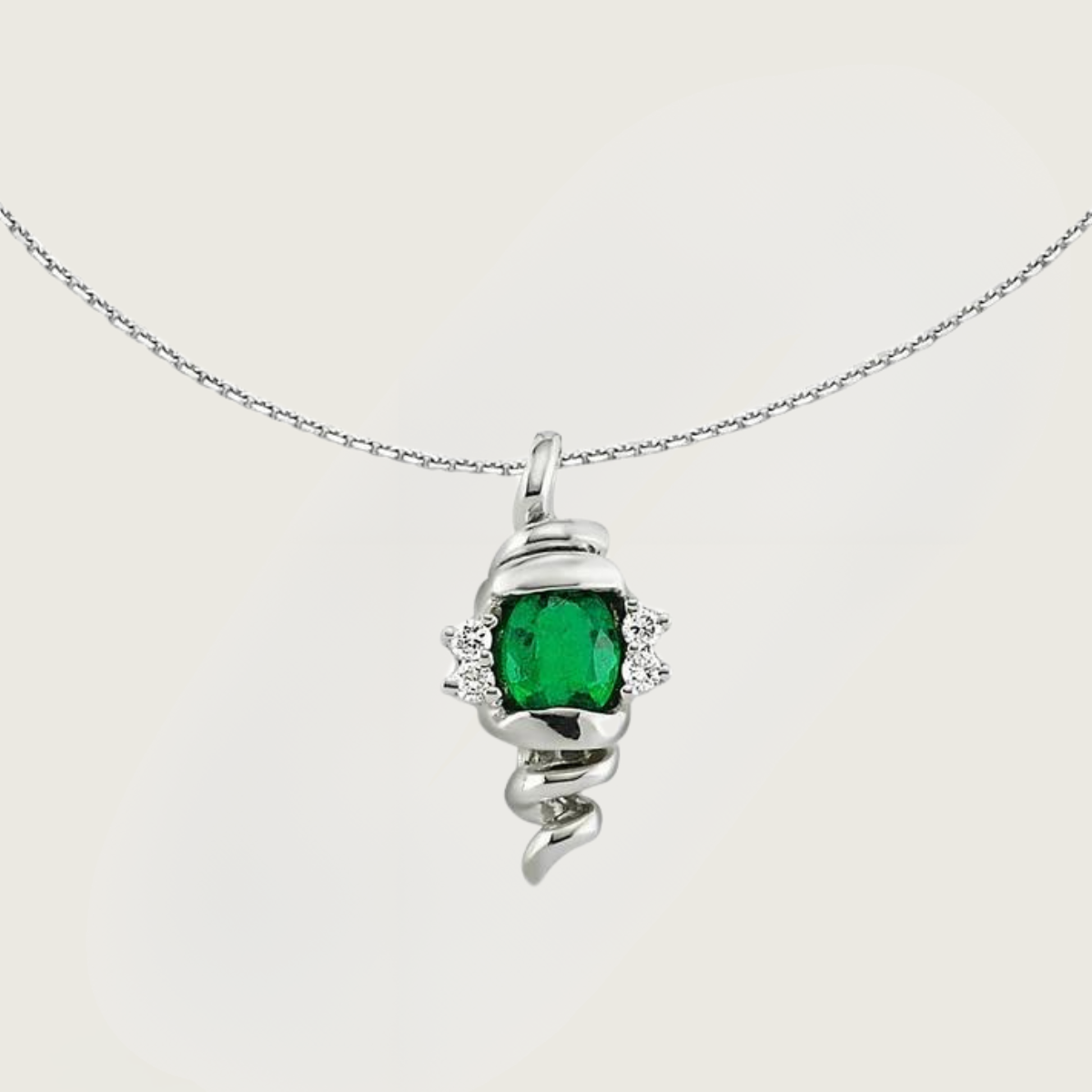 Emerald Spiral Zümrüt Beyaz Altın Pırlanta Kolye