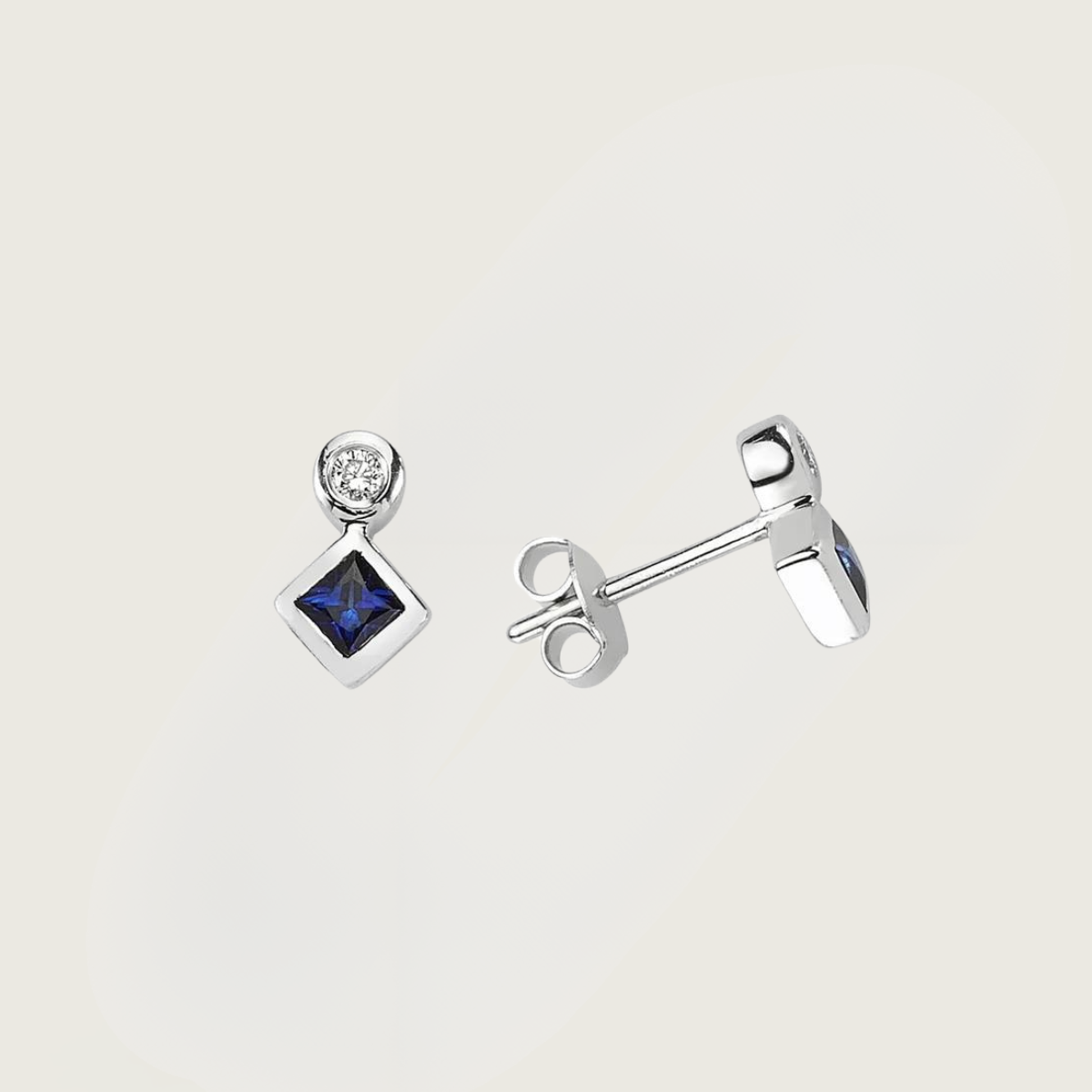 Gece Parıltısı Beyaz Altın Pırlanta ve Safir Küpe
