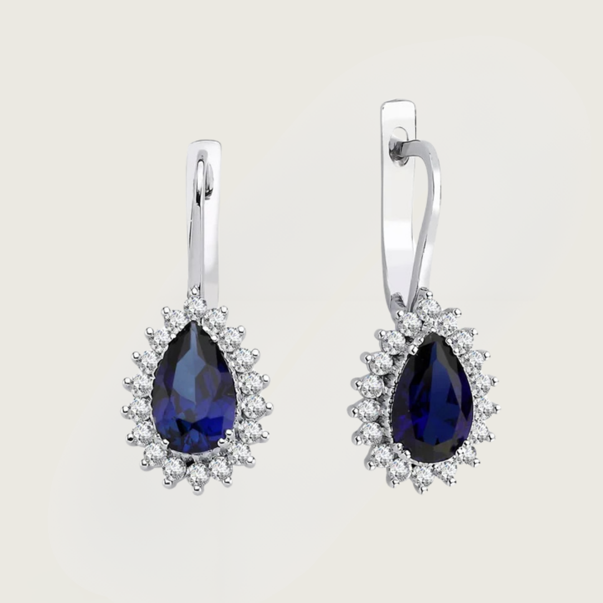 Göksel Gözyaşı Safir ve Pırlantalı Beyaz Altın Küpe