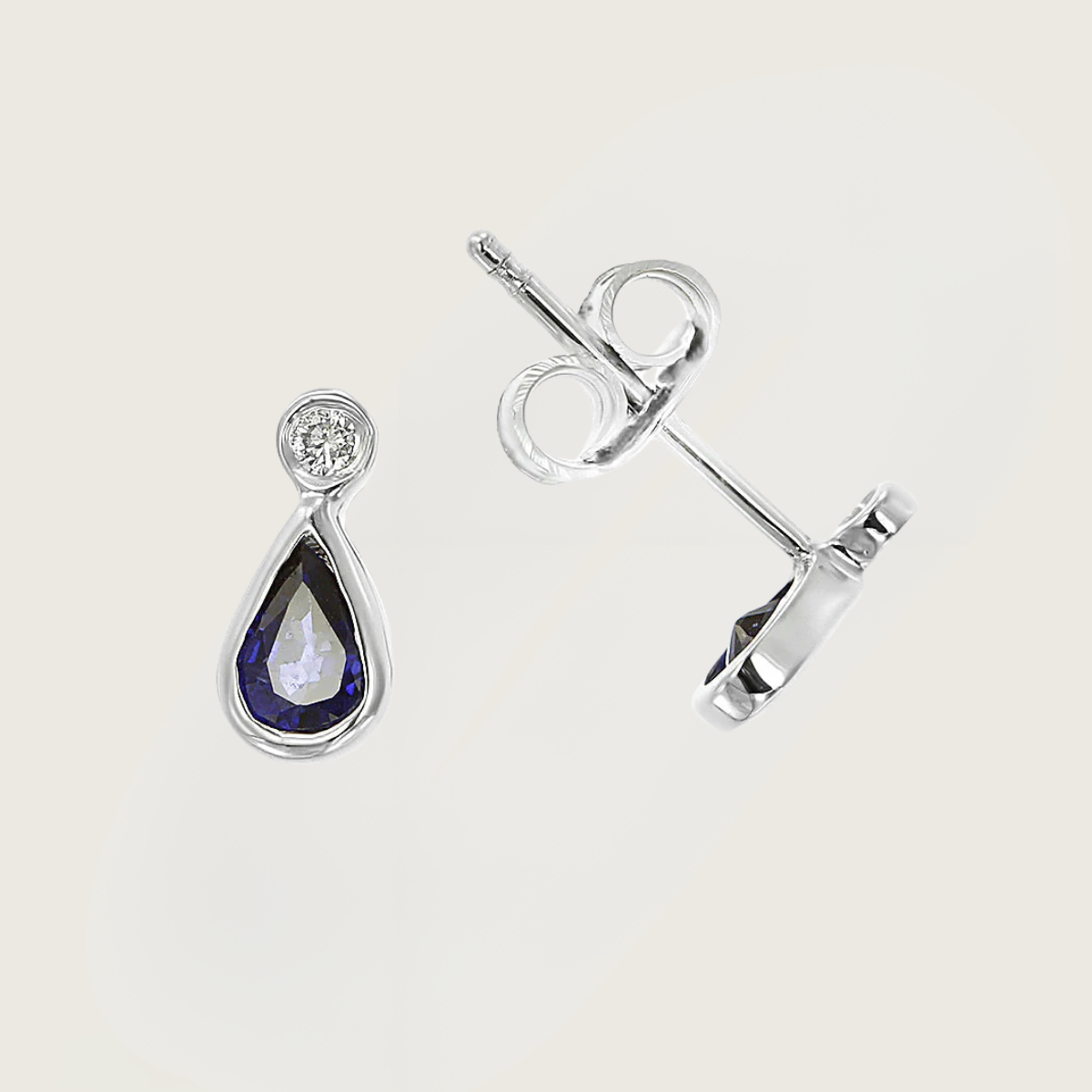 Gökyüzü Damlası Pırlantalı ve Safirli Beyaz Altın Küpe