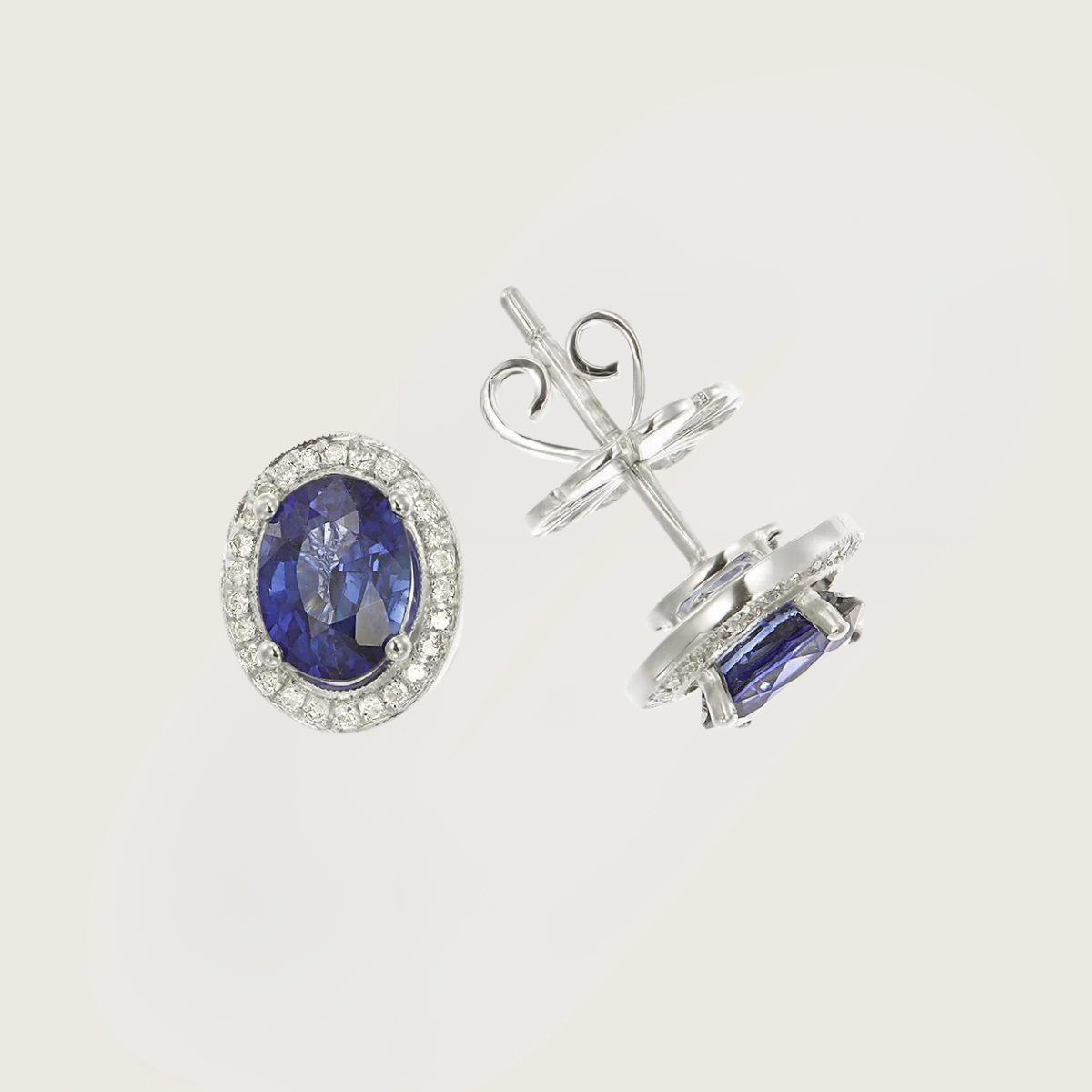Gökyüzü Işıltısı Beyaz Altın Pırlantalı Safir Küpe