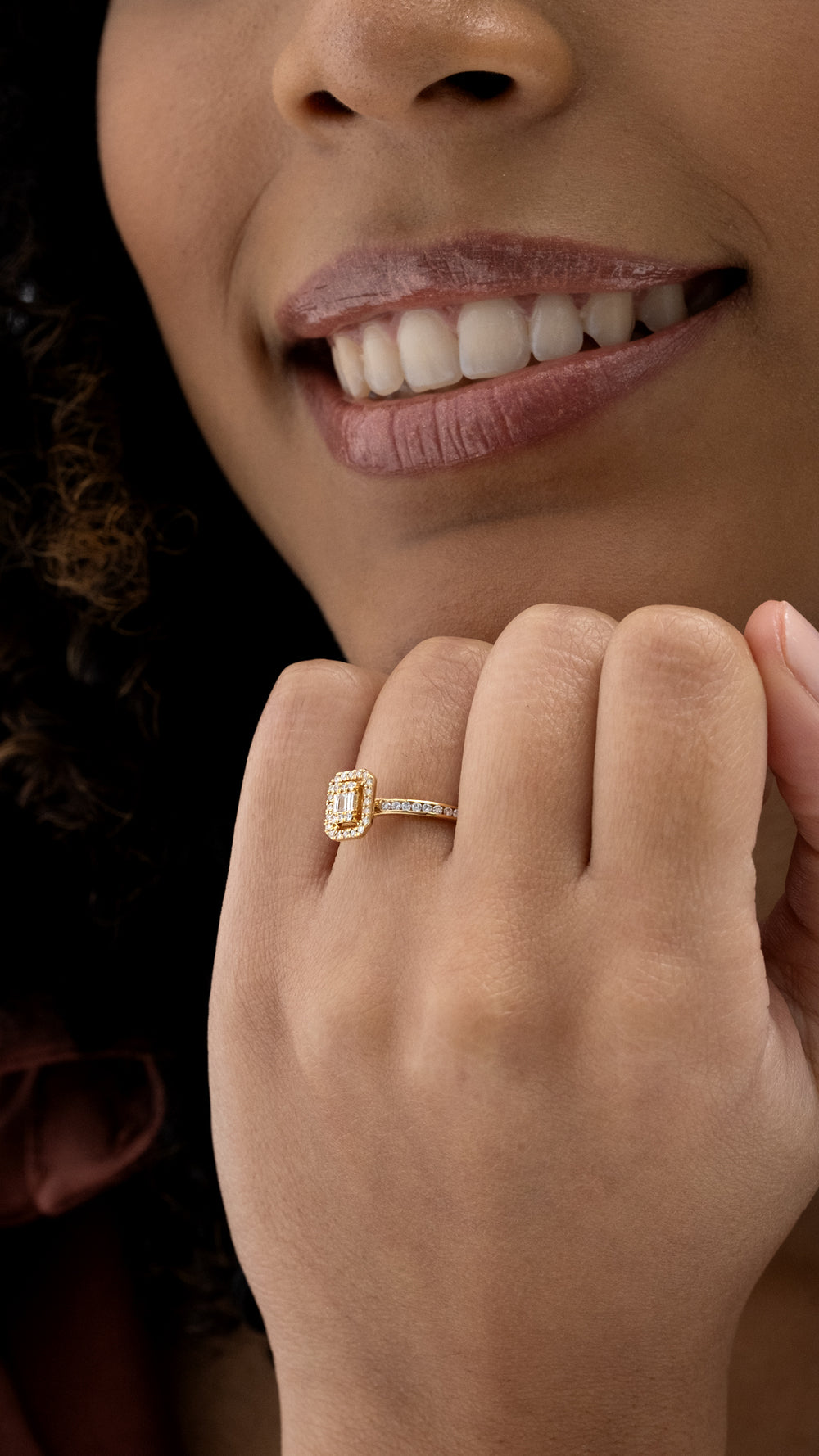 Minimalist montürü ve zarif tasarımıyla göz alıcı bir şıklık sunan Golden Glow Baget Pırlanta Yüzük, özel günler için kusursuz bir tercih. Baget kesim pırlantalarla süslenmiş bu yüzük, ışığı mükemmel bir şekilde yansıtarak her ortamda dikkatleri üzerinize çeker. Göz alıcı altın tonları ve sofistike pırlantaların birleşimi, bu yüzüğü vazgeçilmez kılıyor. Zarafeti ve inceliğiyle hem günlük kullanımda hem de özel günlerde büyüleyici bir dokunuş katacaktır.