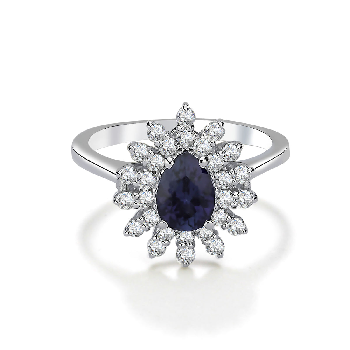 Görkemli Pırlanta Safir Çiçeği Yüzük