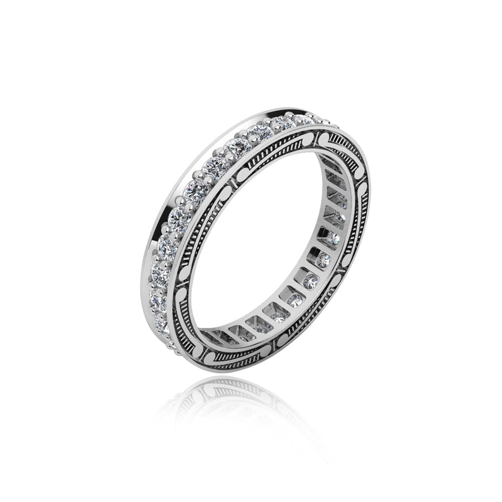 Gravürlü Tamtur Beyaz Altın Pırlanta Yüzük