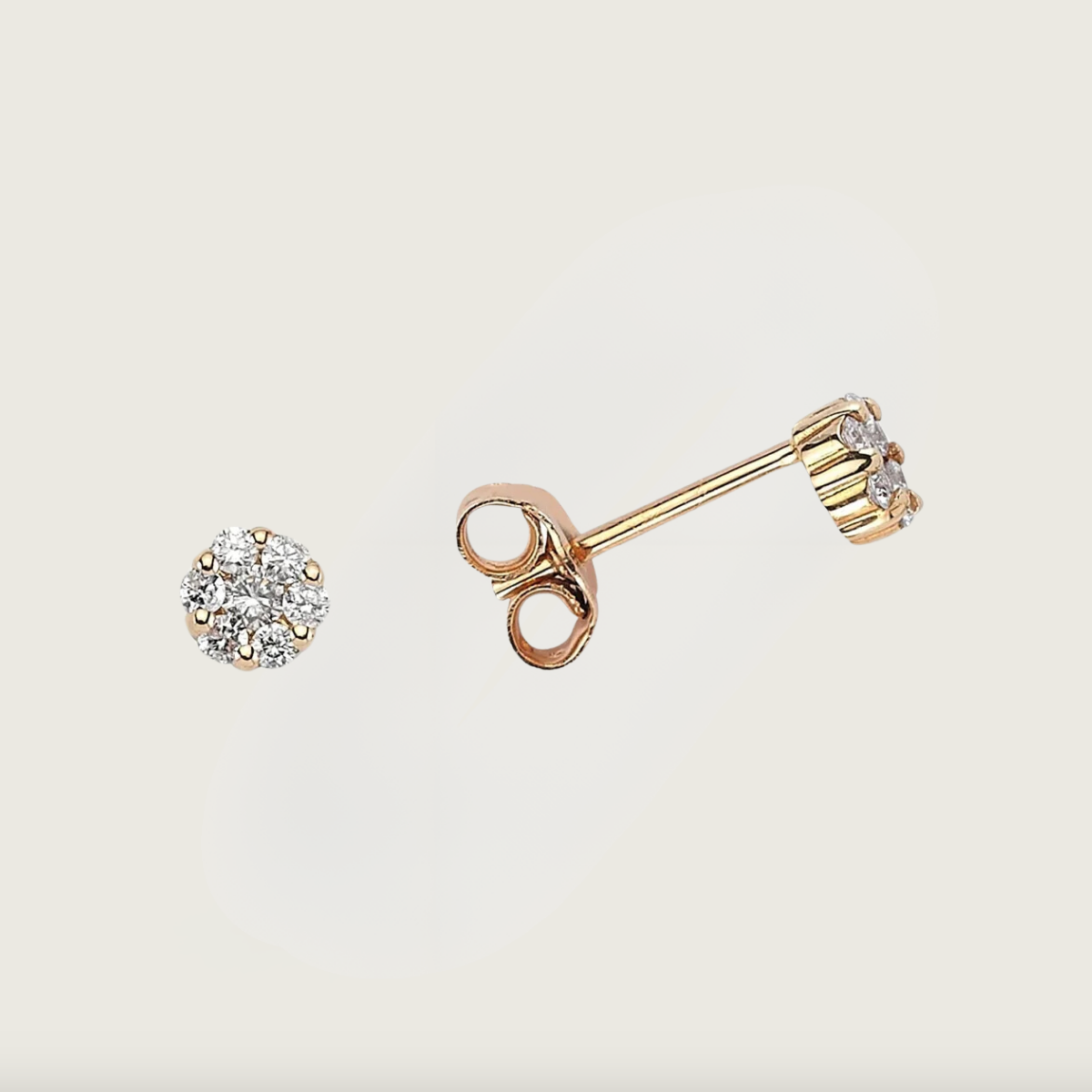 Bu eşsiz küpe çifti, 14 ayar rose altın üzerine işlenmiş pırlantalar ile bezenmiştir. Yuvarlak kesim pırlantaları ile zarif ve sofistike bir dokunuş sunan bu küpe, hem günlük kullanımda hem de özel davetlerde stilinizi tamamlayacak.