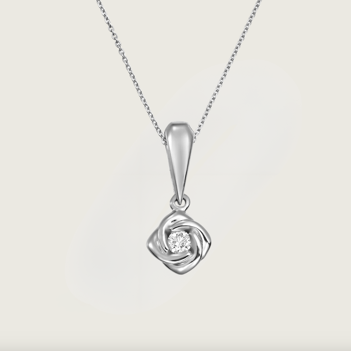 Gül Motifli Tektaş Beyaz Altın Pırlanta Kolye
