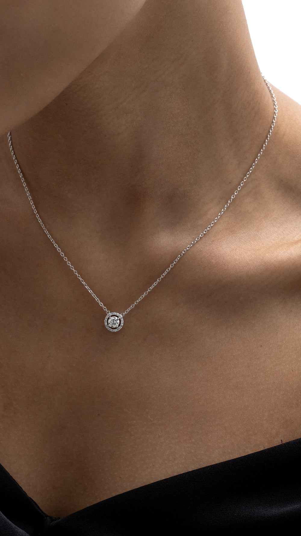 Halo Pırlanta Yuvarlak Kolye