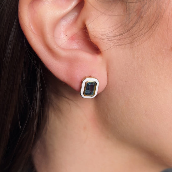 Londra Mavisi Topaz ve beyaz emalin sofistike birleşimi ile zarif tasarımı temsil eden küpeler, La Rosa'nın Carnival koleksiyonunun eşsiz parçalarından biridir. 14 ayar sarı altın yapısı ve 1,52 karatlık zümrüt kesim topaz ile günlük kullanımda şıklığınızı tamamlayacak olan bu küpeler, modern ve zarif bir dokunuş sunar. Özel günler için mükemmel bir tercih olan bu küpeler, estetik anlayışınıza hitap eden şık bir seçim olacaktır.