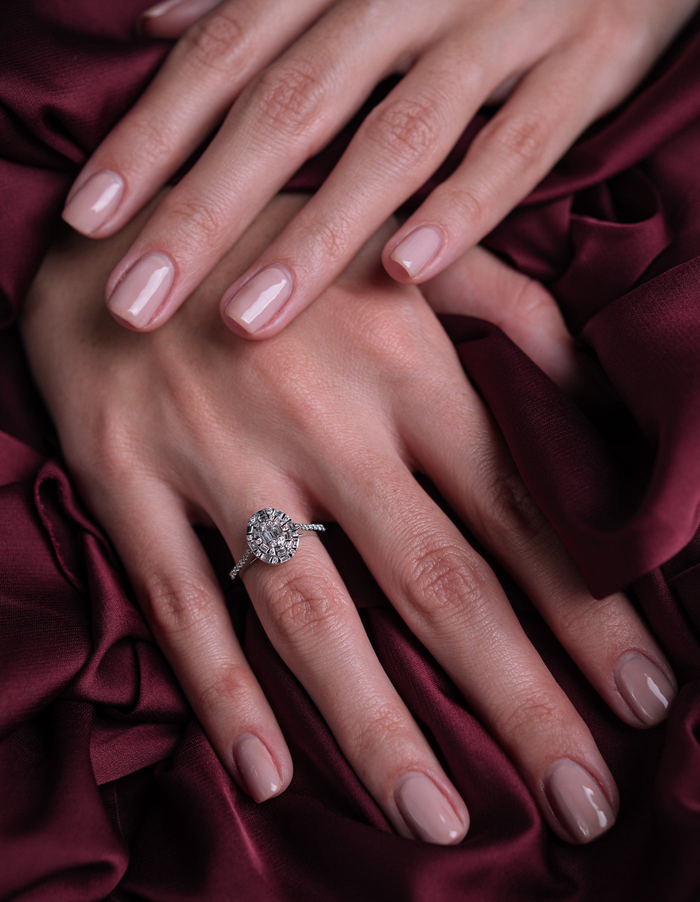 Zarif ve göz alıcı tasarımıyla La Rosa’nın estetik anlayışının mükemmel bir temsilcisidir. Oval kesim pırlanta, modern ve klasik çizgileri bir araya getirerek hem sofistike hem de zamansız bir şıklık sunar. Merkezdeki baget kesim taşlar, yüzüğün parıltısını artırarak ışıltıyı her açıdan yakalar ve büyüleyici bir etki yaratır.Baget kesim pırlantaların ve oval formun mükemmel uyumu, yüzüğe farklı bir ışık ve derinlik kazandırıyor. Her açıdan fark edilir bir parlaklık yaratır.