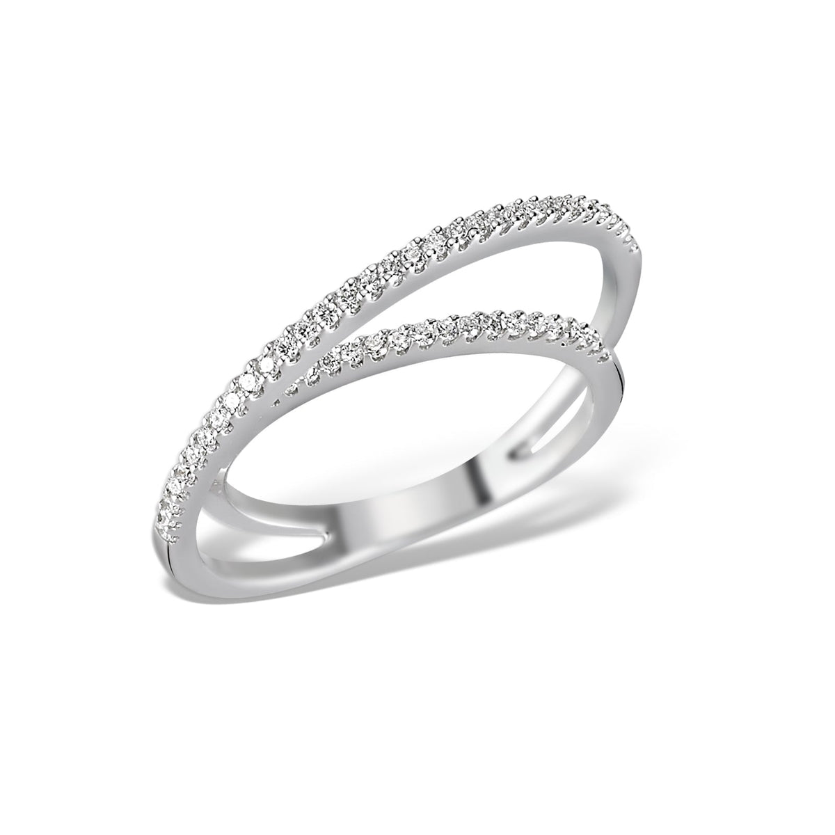İkili Asimetrik Yarımtur Beyaz Altın Pırlanta Yüzük