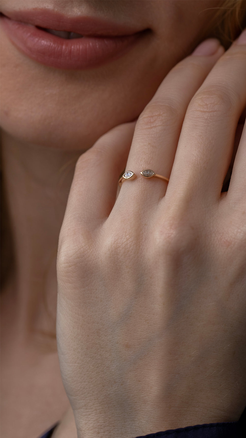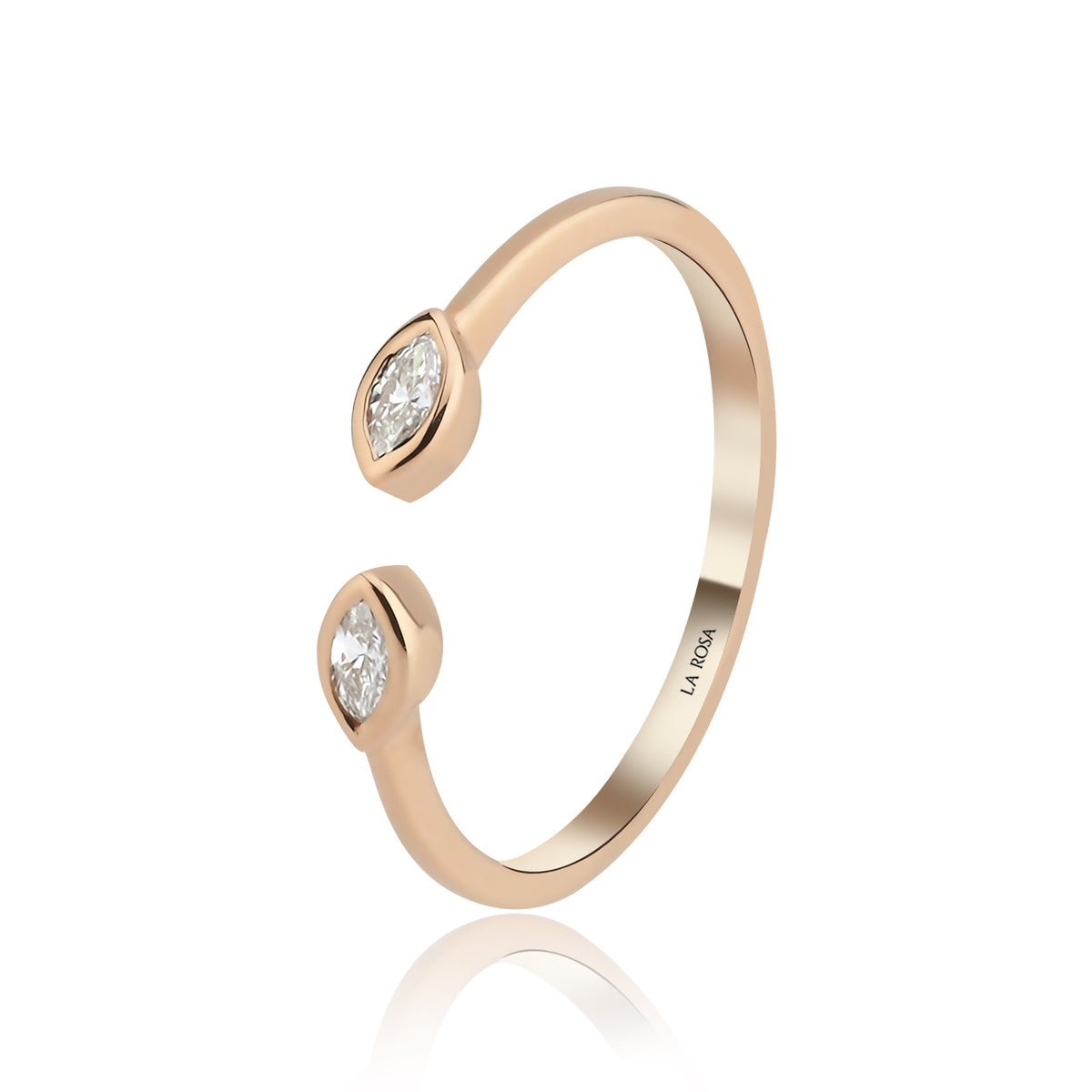 İkili Markiz Kesim Minimal Rose Altın Pırlanta Yüzük