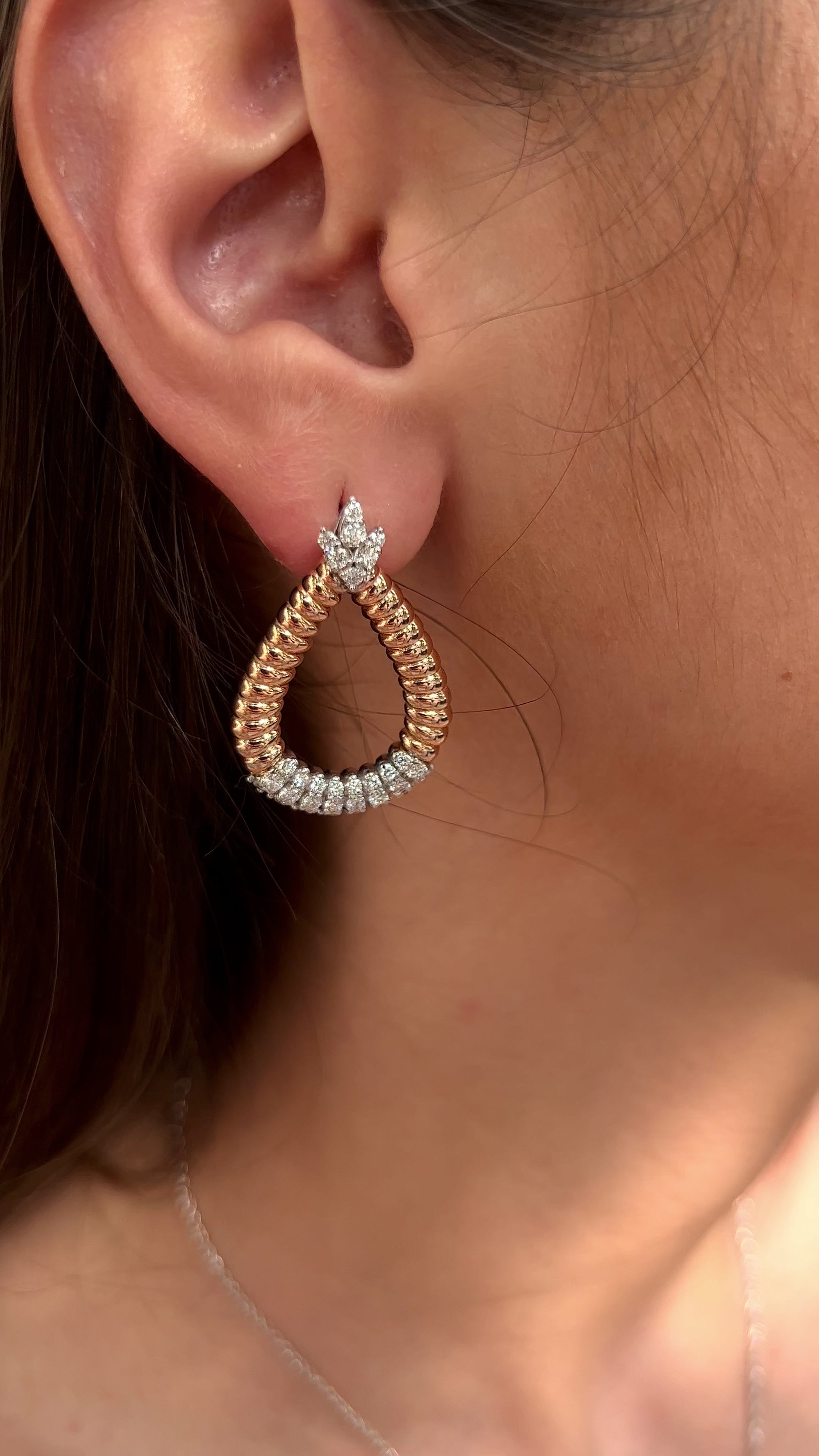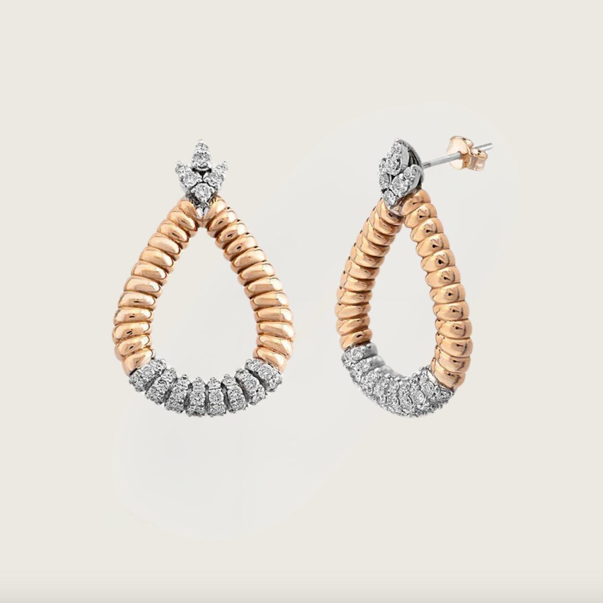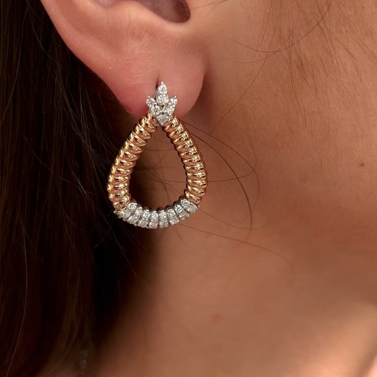 İkili Zerafet Altın ve Beyaz Altın Damla Küpe