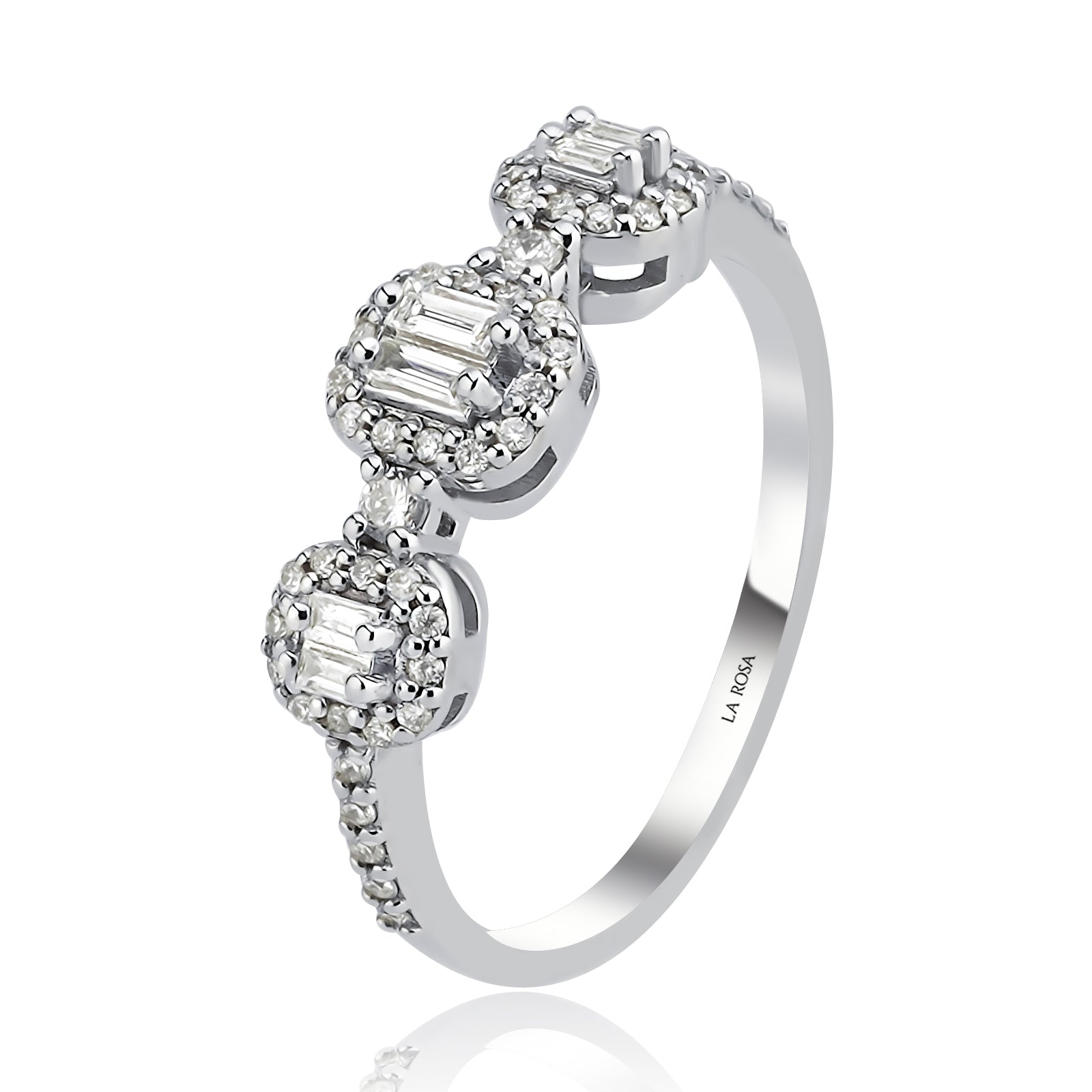 İnce Bağlantılı Beyaz Altın Baget Pırlanta Yüzük