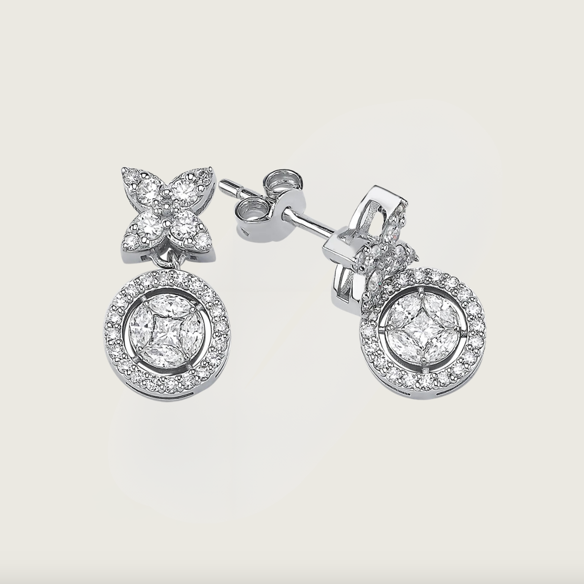 Işığın Dansı Beyaz Altın ve Pırlanta Küpe
