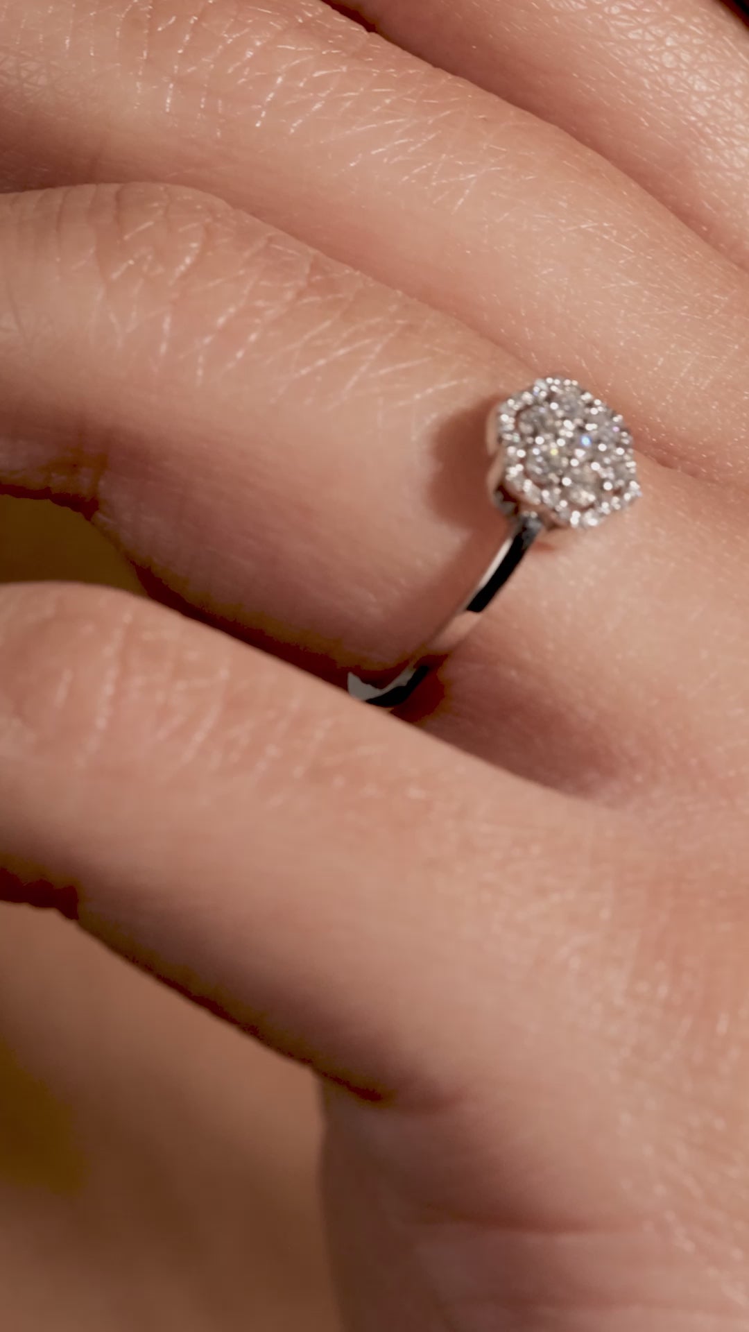 Özenle yerleştirilmiş pırlantaların bir araya gelerek oluşturduğu bu yüzük, her açıdan ışıltılı bir görünüm sunuyor. Adeta bir ışık demeti gibi etrafa yayılan pırlanta parıltıları, hem özel günler hem de günlük kullanım için mükemmel bir tercih sunuyor.