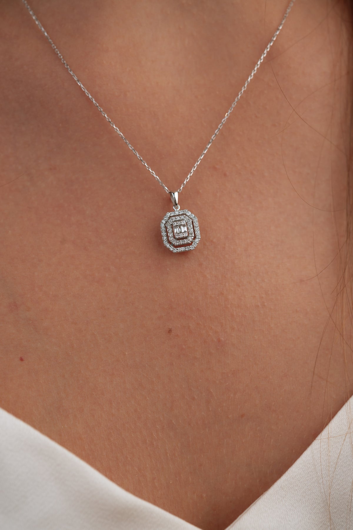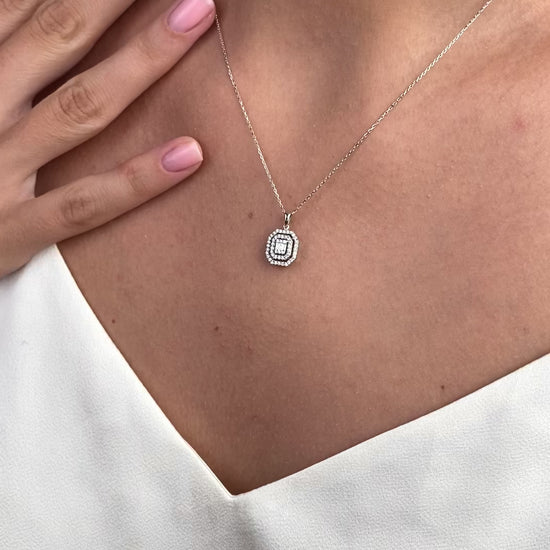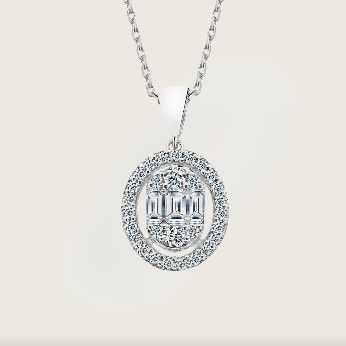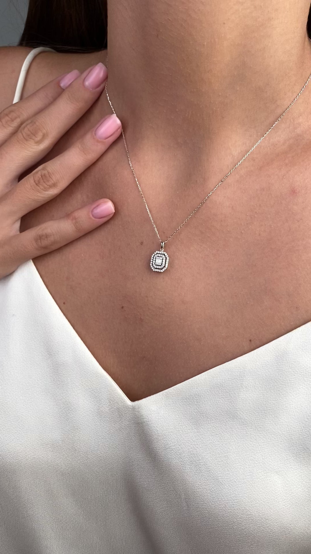 Işıltılı Çerçeve Baget Pırlanta Kolye