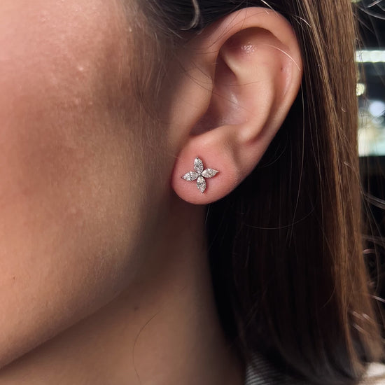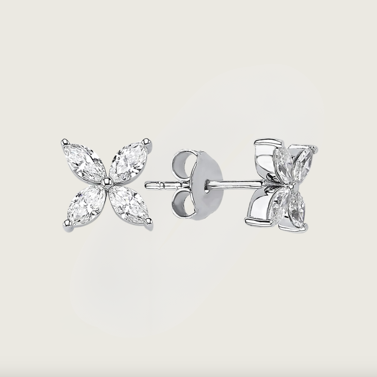Işıltılı Çiçek Beyaz Altın Marquise Pırlanta Küpe