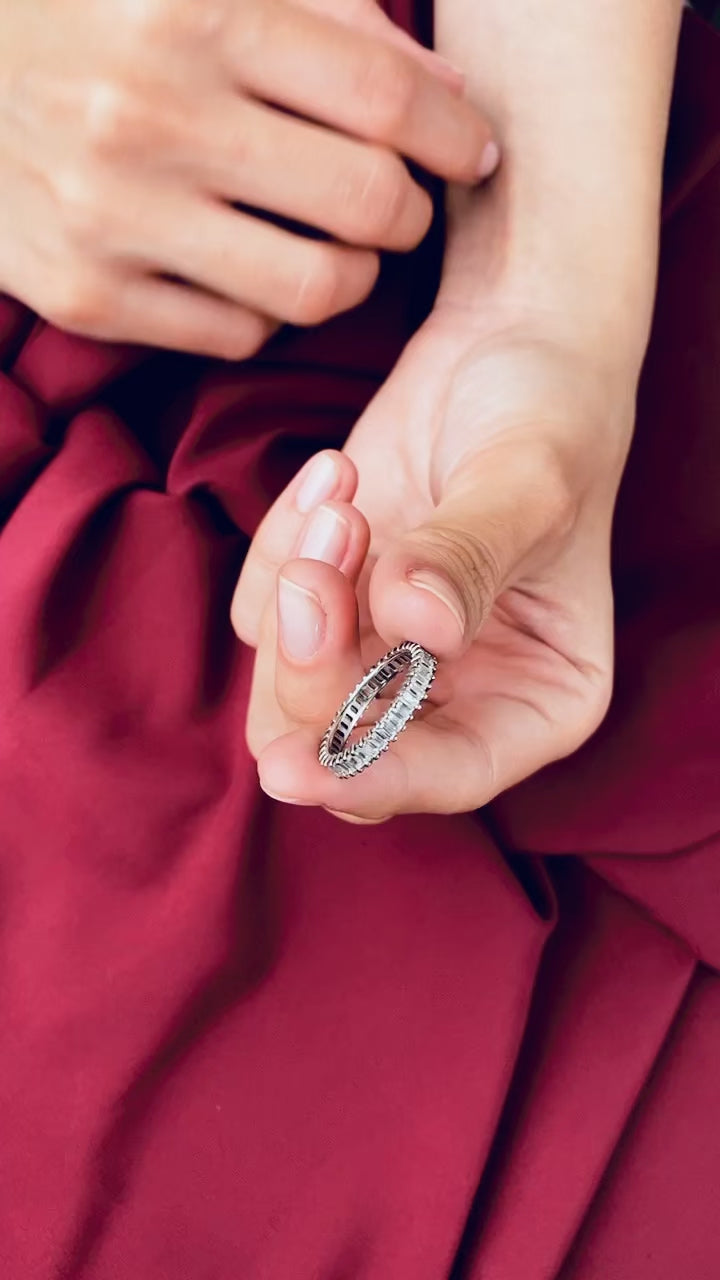 Baget kesim pırlantalarla bezeli bu eşsiz beyaz altın tamtur yüzük, gökyüzündeki yıldızların parıltısından ilham alıyor. 2.50ct değerindeki parlak pırlantalar, yüzüğün etrafını mükemmel bir şekilde çevreleyerek şıklık ve sofistikasyon sunuyor. Modern tasarım ve ince işçilik, bu yüzüğü her açıdan büyüleyici kılıyor. Hem günlük kullanımda zarif bir dokunuş hem de özel anlarınızda unutulmaz bir ışıltı katacak olan bu yüzük, stilinizi tamamlayacak göz alıcı bir mücevher.