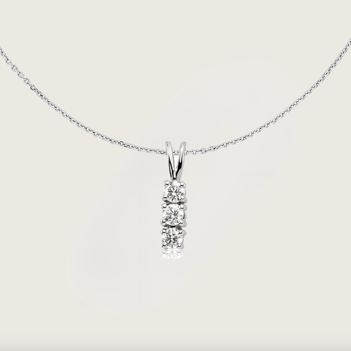 La Rosa'nın 2024 koleksiyonuna ait olan bu şık kolye, 14 Ayar beyaz altın üzerine üç adet yuvarlak kesim pırlanta ile süslenmiştir. Pırlantaların parlaklığı ve beyaz altının zarif tasarımı ile günlük şıklığınıza zarafet katacak bir aksesuar sunar. Hem klasik hem de modern tasarımıyla bu kolye, her kombini tamamlayacak ideal bir parça.