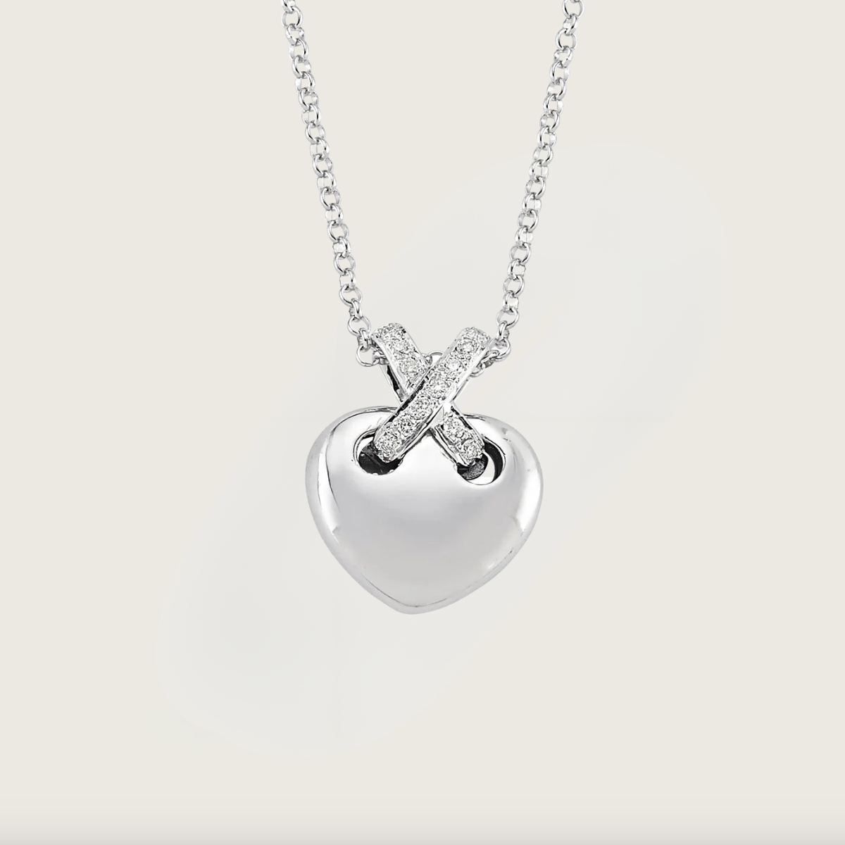 Bu zarif ve duygusal tasarıma sahip kalpli kolye, 14 Ayar beyaz altından yapılmış olup, kalp formuyla sevdiklerinize olan duygularınızı ifade etmenin en şık yolunu sunar. Kalbin üzerindeki çapraz pırlanta detaylarıyla kolyenin eşsiz ışıltısı birleşerek, özel günlerde ya da günlük kullanımda stilinize ince bir zarafet katacaktır. Kendi tarzınıza zarif bir dokunuş eklemek veya sevdiklerinize unutulmaz bir hediye vermek için mükemmel bir seçenek.