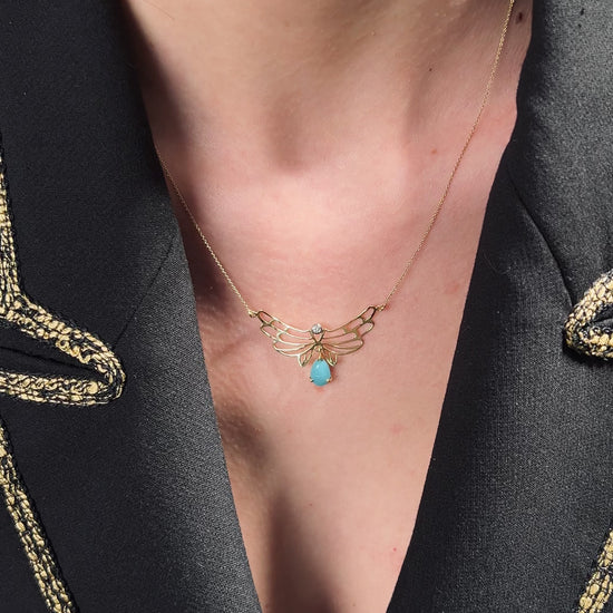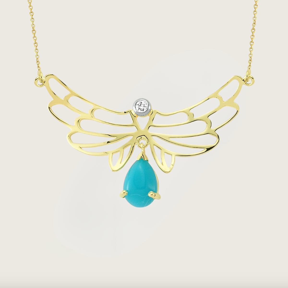 Kanat Parıltısı Altın Turkuaz Pırlantalı Kolye
