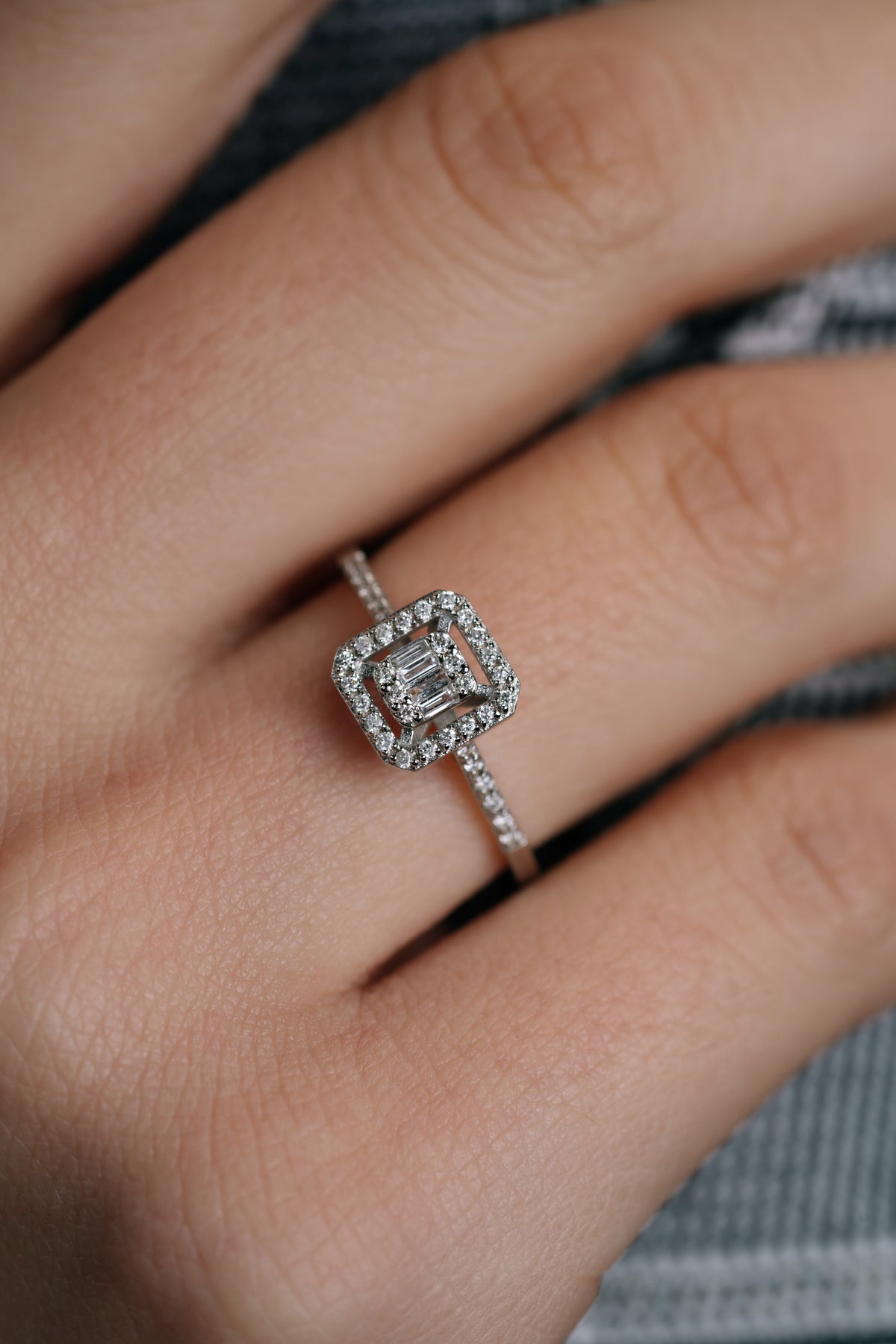 Elegant Kare Işıltı Baget Pırlanta Yüzük