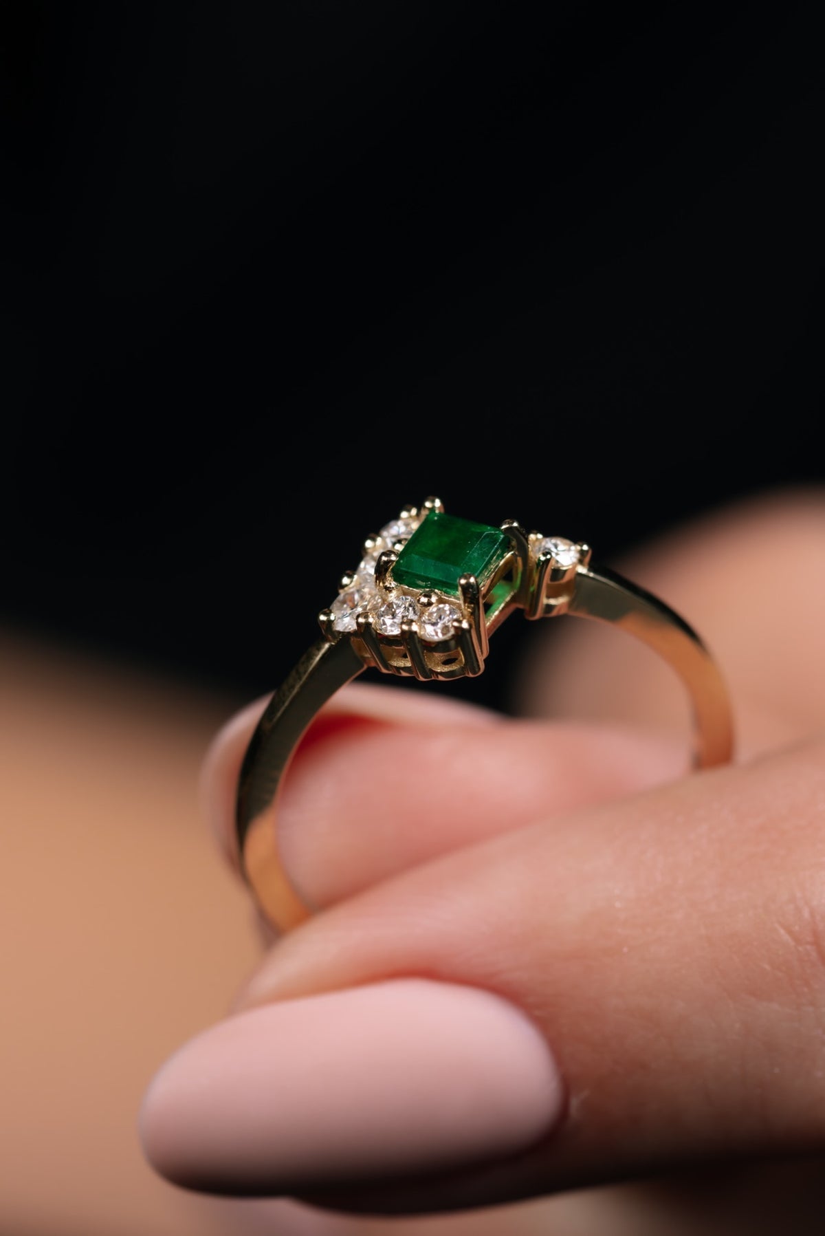 Kare Zümrüt Pırlanta Yüzük