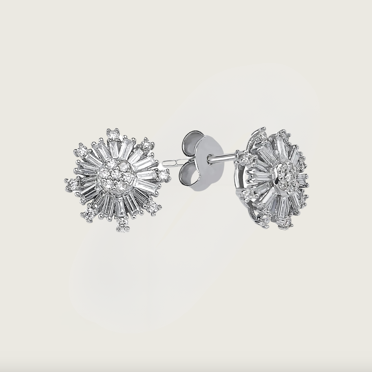 Karlar Işıltısı Beyaz Altın Baget Pırlantalı Küpe