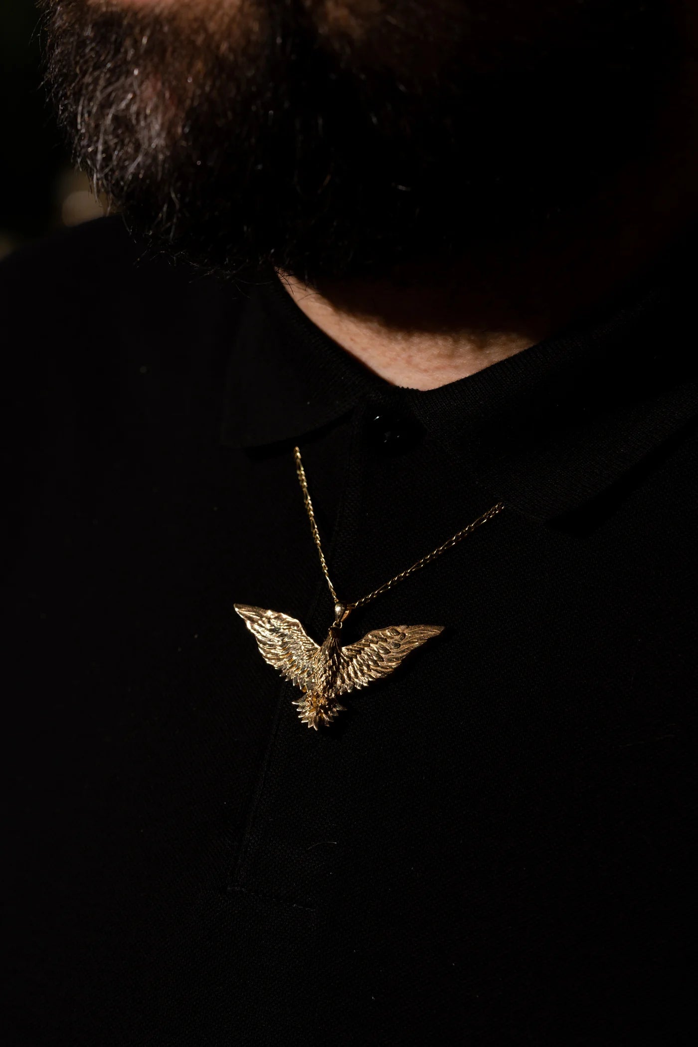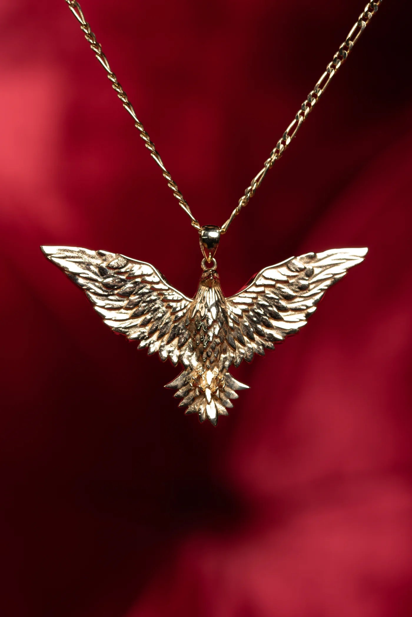 Özgürlüğün ve gücün simgesi olan Kartal Sarı Altın Erkek Kolye, cesur ve güçlü bir duruş sergilemek isteyenler için tasarlandı. Detaylı kanat işçiliğiyle ön plana çıkan bu kolye, kartalın etkileyici görünümünü sarı altının ihtişamıyla buluşturuyor. Her anınıza eşlik edecek bu aksesuar, özgün ve güçlü stilinizi yansıtmak için mükemmel bir tercih.