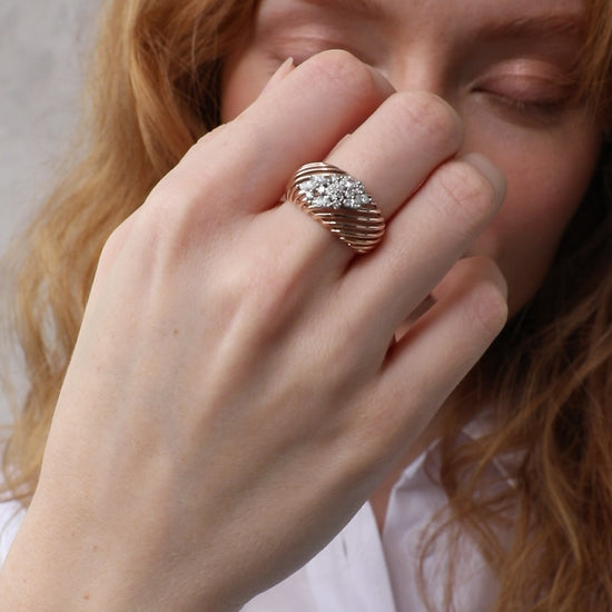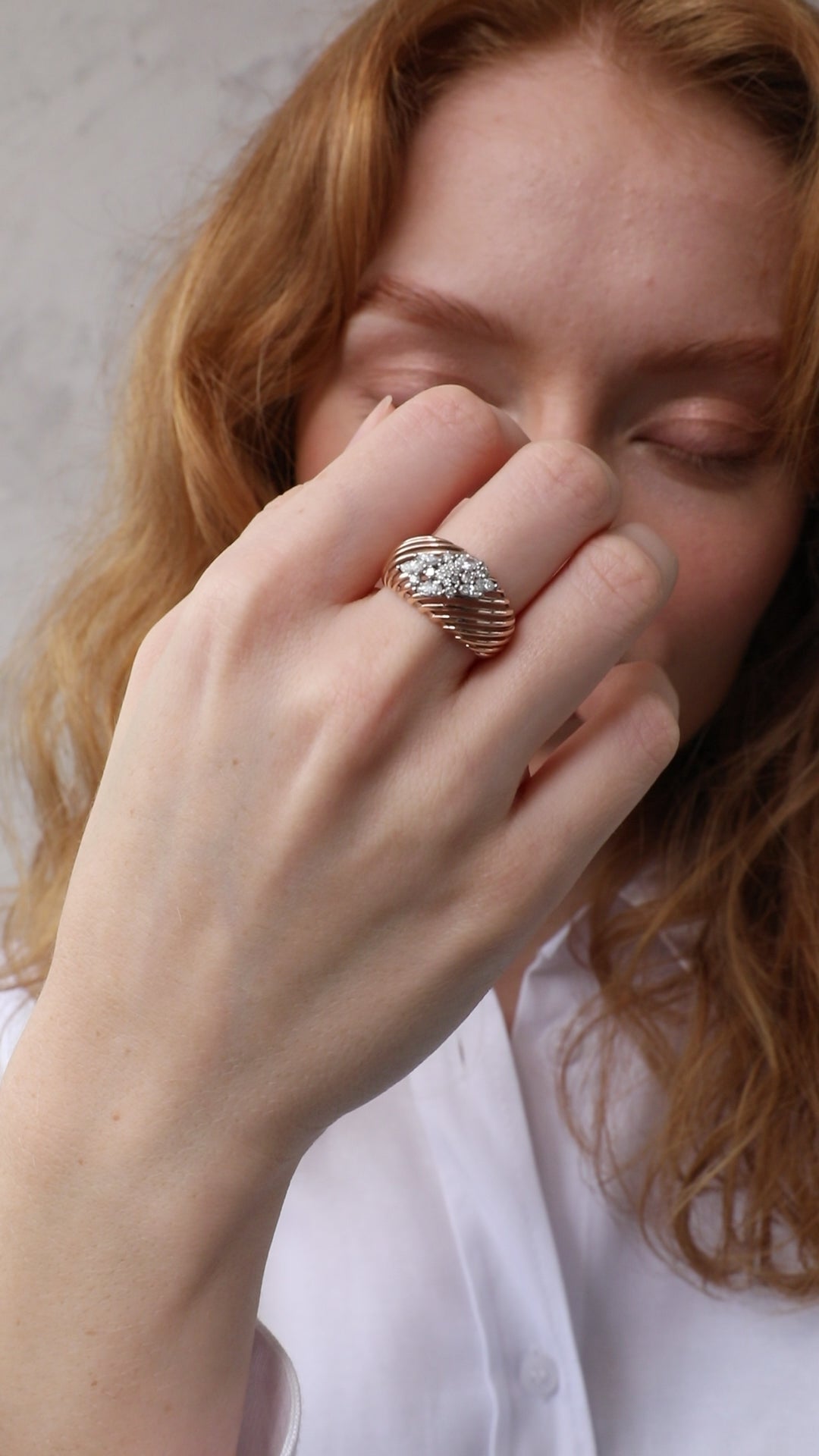 Kavisli Işıltı Rose Altın Pırlanta Yüzük