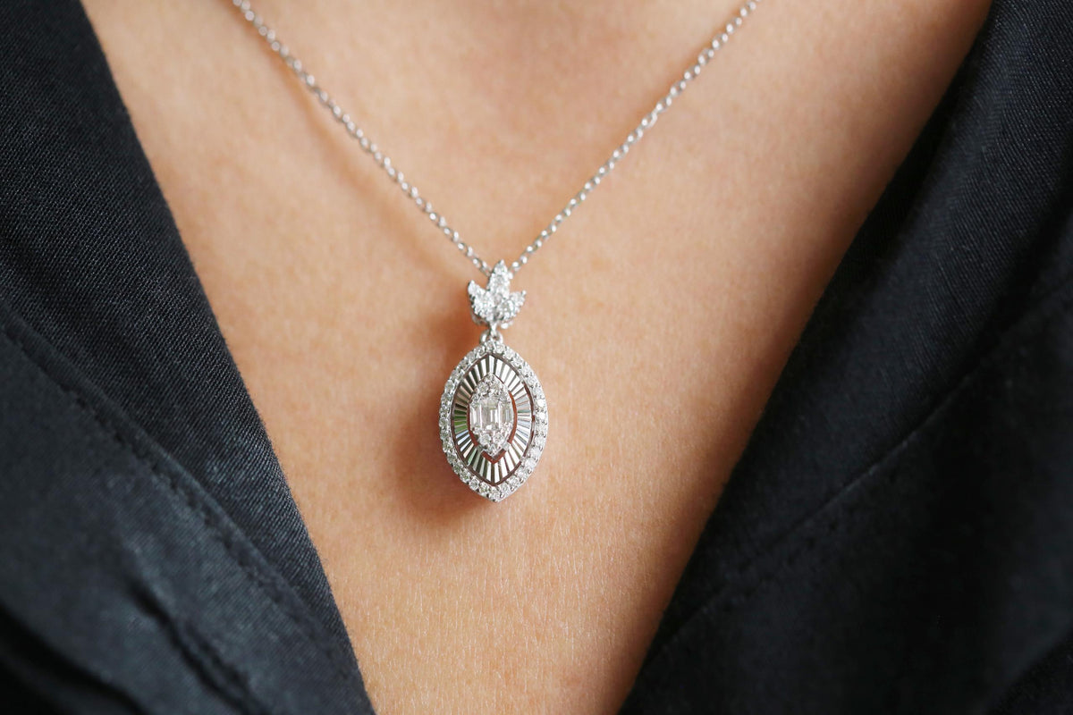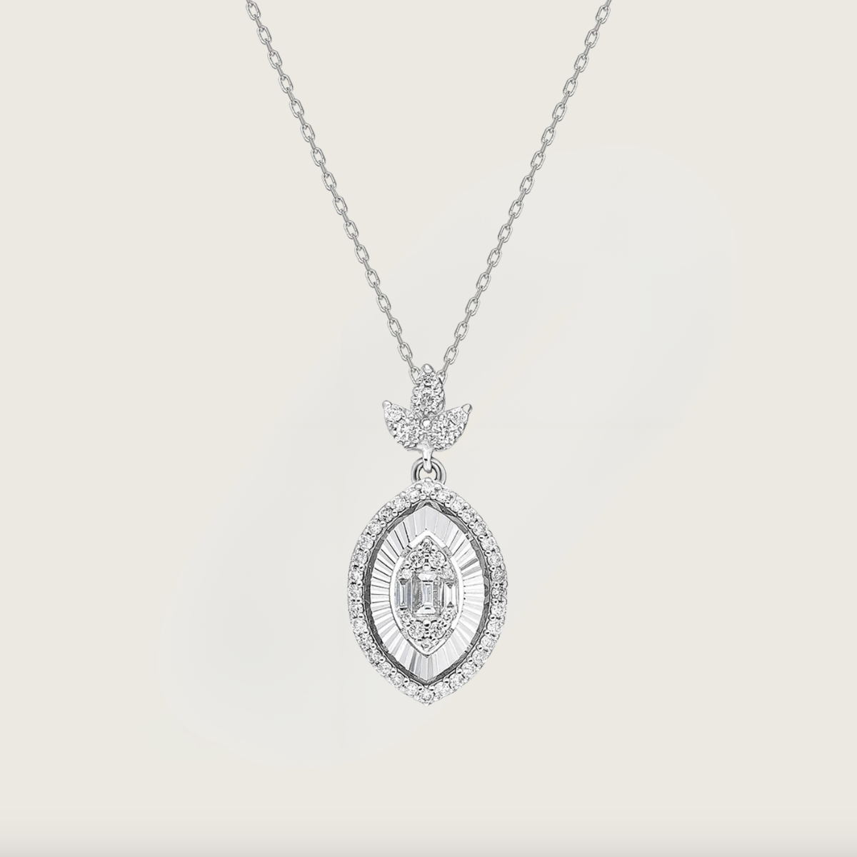 Kraliçe Işıltısı Baget Pırlanta Kolye