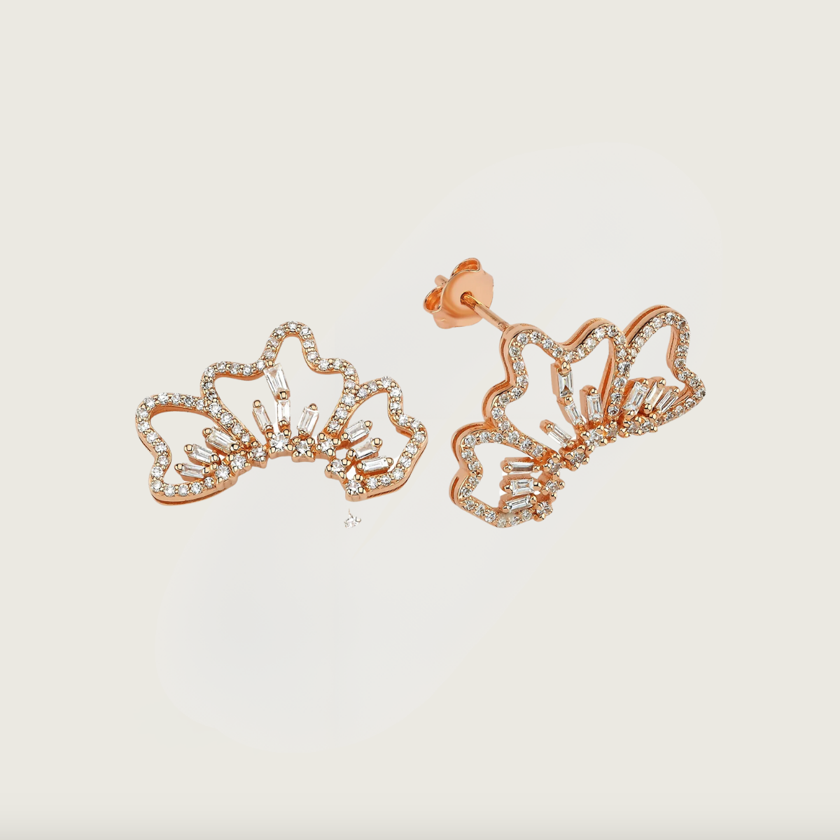 Görkemli bir tacın zarafetini kulaklarınızda taşıyın. 14 ayar pembe altından üretilmiş ve pırlantalarla süslenmiş küpe, kraliyet şıklığını yansıtan benzersiz bir tasarıma sahiptir. Taç şeklindeki detaylar, zarif çizgilerle birleşerek her hareketinizde ışığı yakalayacak bir ışıltı sunar. Özel günlerde ya da günlük şıklığınızda kullanabileceğiniz bu pırlanta küpe, stilinize asalet ve sofistike bir dokunuş katacak.