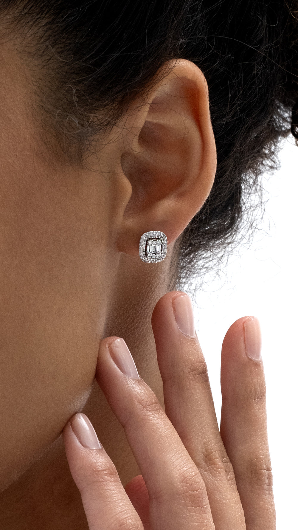 Zarif küpeler, kraliyetin şıklığını ve zarafetini günlük hayatınıza taşıyor. Oval pırlanta kesimi ve dikkatle yerleştirilmiş baget pırlantalar, bu küpeyi hem modern hem de klasik bir dokunuşla tamamlıyor. 14 ayar beyaz altın, parıltısıyla göz kamaştıran yuvarlak pırlanta detaylarla çevrili, her hareketinizde ışığı yakalayan bu tasarım, özel anlarınızı taçlandırmak için mükemmel bir seçim olacak. Kendiniz ya da sevdikleriniz için seçebileceğiniz bu küpe, benzersiz bir mücevher koleksiyonu oluşturmanın ilk adımı.