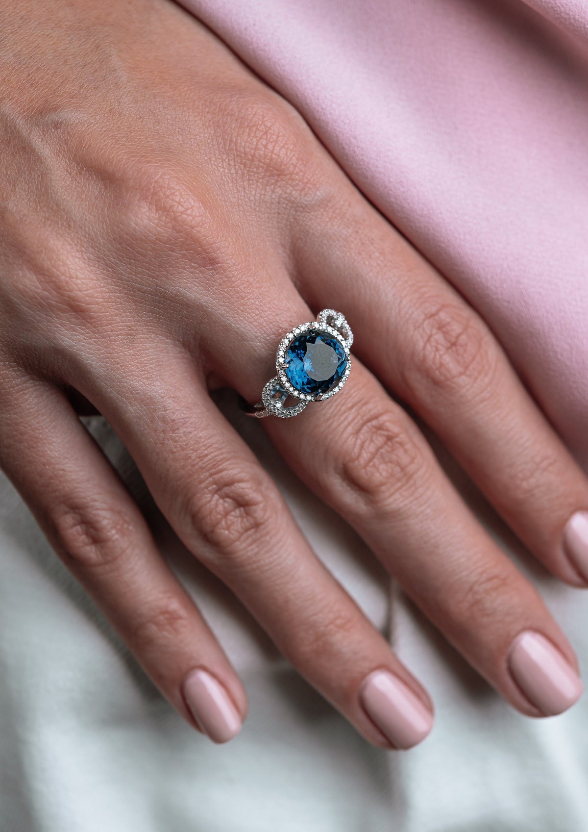 Kraliyet Mavisi Topaz ve Pırlanta Yüzük