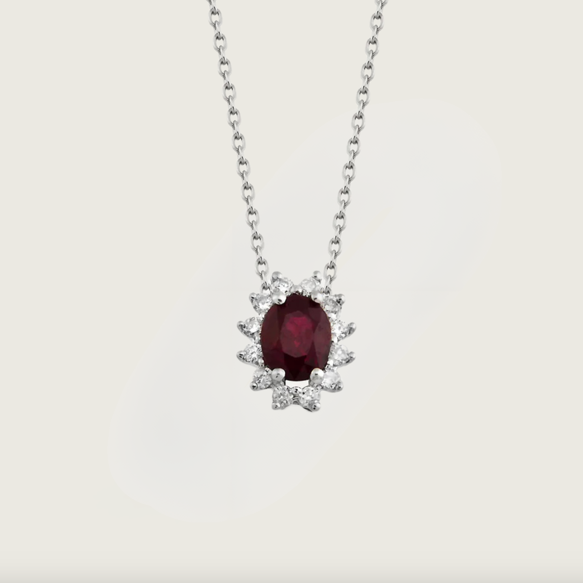 14 Ayar Beyaz Altın Kolye, 1,49 gram Bu zarif ve etkileyici kolye, oval kesim yakutun göz alıcı ihtişamıyla tasarlanmıştır. 0,09 karat elmas ve 0,35 karat yakut taşlarıyla süslenmiş bu mücevher, hem günlük stilinize hem de özel davetlerinize zarif bir dokunuş katar. Beyaz altın ile uyum içinde olan bu kolye, güçlü bir duruş ve kraliyet zarafetini yansıtır. Pırlanta berraklığı G, elmas rengi VS olup, zarafeti ve ışıltıyı en üst düzeye çıkaran bu özel parça, mücevher koleksiyonunuzun vazgeçilmezlerinden biri olacak.