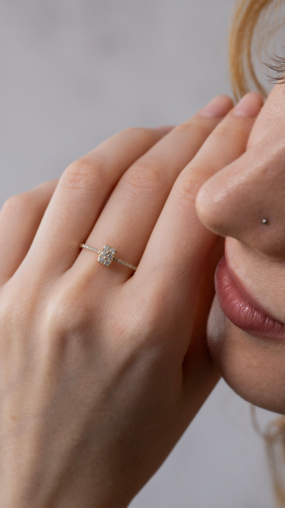 Hayatınızdaki her özel an için tasarlanmış bu şık mücevher, zarafetin ve ışıltının simgesidir. 14 ayar sarı altın üzerine yerleştirilmiş 0.19 karat yuvarlak kesim pırlantalar, yüzüğe büyüleyici bir ışıltı kazandırırken, ince ve zarif tasarımıyla parmakta göz alıcı bir duruş sergiler. Kraliyet zerafetini yansıtan bu yüzük, hem günlük kullanım hem de özel anlar için ideal bir seçimdir. Sarı altının sıcak parlaklığı ve pırlantaların zamansız güzelliğiyle bir araya gelen bu yüzük, sonsuz sevginizi şık bir şekilde ölümsüzleştirmek için tasarlandı.