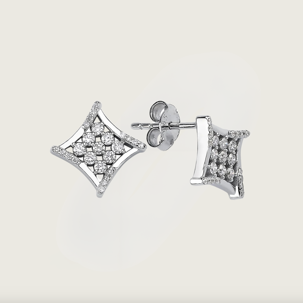 Geometrinin sanattaki en şık ifadesi olan Kübizm'den ilham alınarak tasarlanan bu 14 ayar beyaz altın küpeler, modern ve sofistike bir tarzı yansıtıyor. Romb şeklindeki zarif tasarımı, dikkatle yerleştirilmiş pırlantalarla süslenmiş olup ışığı her açıdan yakalayan bir parıltı sunar. Göz alıcı bir zarafete sahip bu küpeler, özel günlerde şıklığınızı tamamlamak için ideal bir seçimdir.