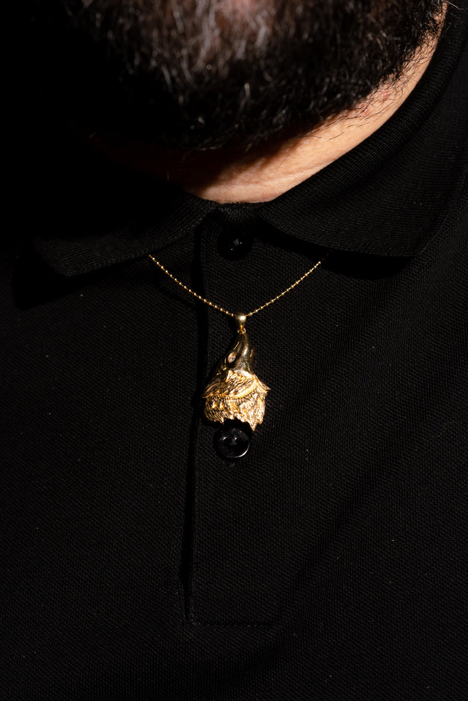 Kurt Figürlü Sarı Altın Erkek Kolye