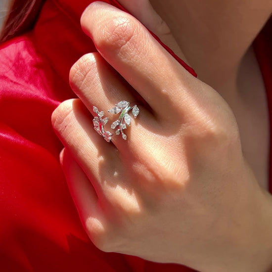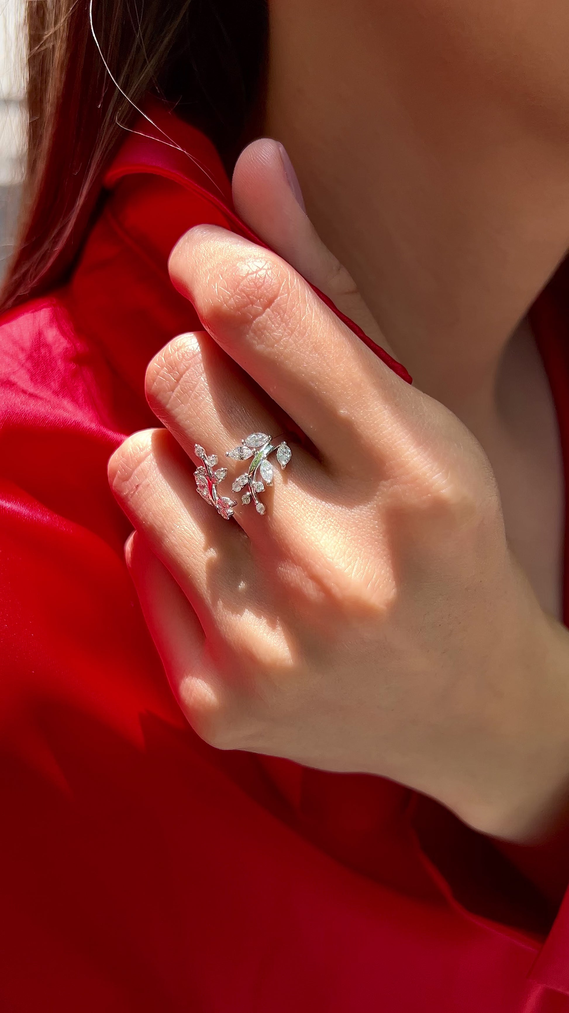 Markiz Bahar Pırlanta Yüzük, doğanın zarafetini ve tazeliğini parmaklarınızda hissettiriyor. Özel olarak kesilmiş markiz pırlantalar, çiçek dalı tasarımının göz alıcı detaylarıyla birleşerek, ışıltılı bir bahar bahçesi yaratıyor. Her bir pırlanta, ince işçilikle yerleştirilmiş olup, yüzüğün zarif siluetiyle mükemmel bir uyum sağlıyor.